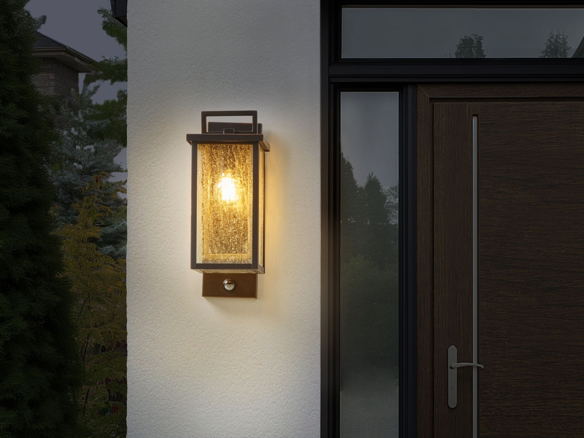 Bringen Sie Licht in Ihr Zuhause und schmücken Sie Ihren Aussenbereich mit dieser Wandleuchte im Retrostil. Sie verfügt über einen eingebauten Bewegungssensor, der eine mühelose Bedienung ermöglicht. Die aus Eisen und Glas gefertigte Leuchte ist nicht nur elegant und stilvoll, sondern auch langlebig und wasserbeständig. Das Produkt erfordert nur minimale Wartung und die Installation ist wirklich schnell und einfach. Material: Eisen. Zusätzliches Material: Glas. Gewicht: 3 Montage: Benötigt keine Montage Das Angebot beinhaltet: 1 x Wandleuchte für den Aussenbereich, Nicht im Lieferumfang enthalten: Leuchtmittel Höhe: 37 zusätzliche Information: Die Stromkabel dürfen nur von einem qualifizierten Elektriker angepasst werden., Diese Leuchte ist geeignet für Leuchtmittel der Energieklassen A bis G auf einer Skala von A (sehr effizient) bis G (weniger effizient). Geeignet für: LED Leuchtmittel, Eco-Halogen Leuchtmittel, Energiesparleuchtmittel. Breite: 14 Tiefe: 19 Art: Aussenwandleuchte Stil: Retro Allgemeine Farbe: Schwarz Hauptmaterial: Eisen Fassung: 100 W IP Protection Code: IP 44 (spritzwassergeschützt)