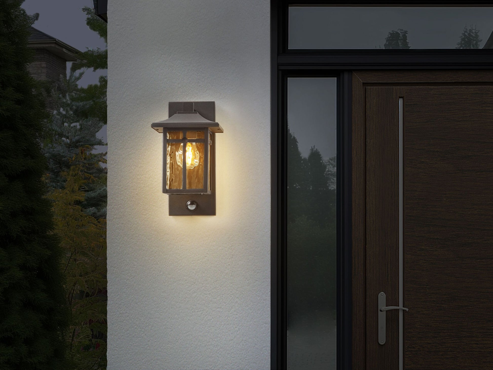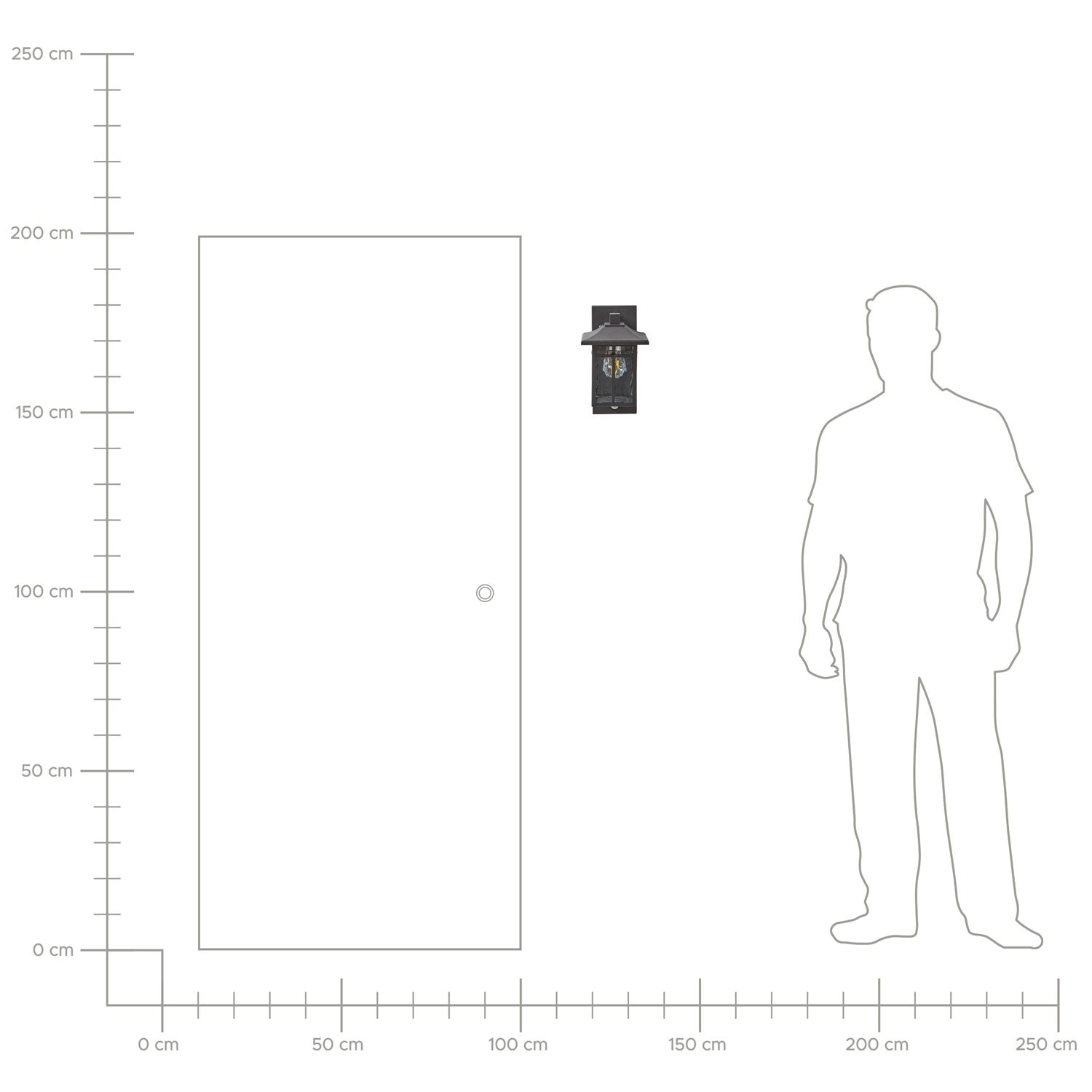 Mit dieser Wandleuchte in klassischer Laternenform können Sie Ihr Zuhause aufwerten und verschönern. Sie ist mit einem integrierten Bewegungssensor ausgestattet, der für eine mühelose Bedienung sorgt. Hergestellt aus einer Mischung aus Eisen und Glas, ist sie nicht nur elegant und stilvoll, sondern auch bemerkenswert langlebig und wasserbeständig. Die Wartung ist einfach und die Installation schnell und unkompliziert. Material: Eisen. Zusätzliches Material: Glas. Gewicht: 2 Montage: Benötigt keine Montage Das Angebot beinhaltet: 1 x Wandleuchte für den Aussenbereich, Nicht im Lieferumfang enthalten: Leuchtmittel Höhe: 30 zusätzliche Information: Die Stromkabel dürfen nur von einem qualifizierten Elektriker angepasst werden., Diese Leuchte ist geeignet für Leuchtmittel der Energieklassen A bis G auf einer Skala von A (sehr effizient) bis G (weniger effizient). Geeignet für: LED Leuchtmittel, Eco-Halogen Leuchtmittel, Energiesparleuchtmittel. Breite: 17 Tiefe: 17 Art: Aussenwandleuchte Stil: Retro Allgemeine Farbe: Schwarz Hauptmaterial: Eisen Fassung: 100 W IP Protection Code: IP 44 (spritzwassergeschützt)