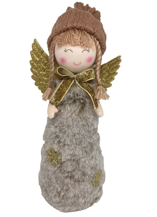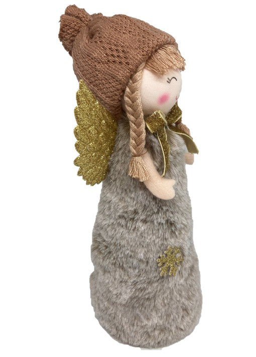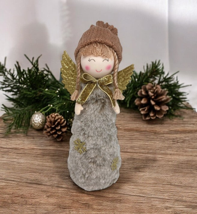 Deko Engel stehend grau Grösse: 8x7x21cm mit brauner Strickmütze