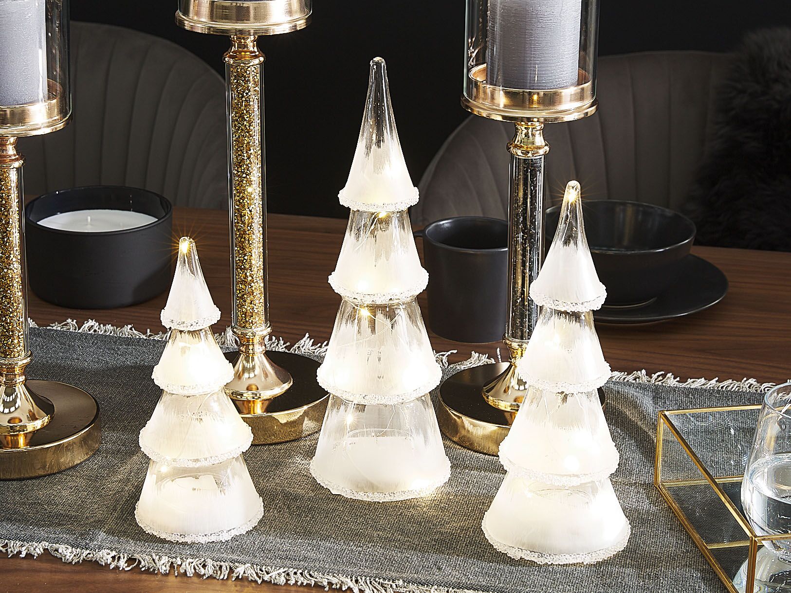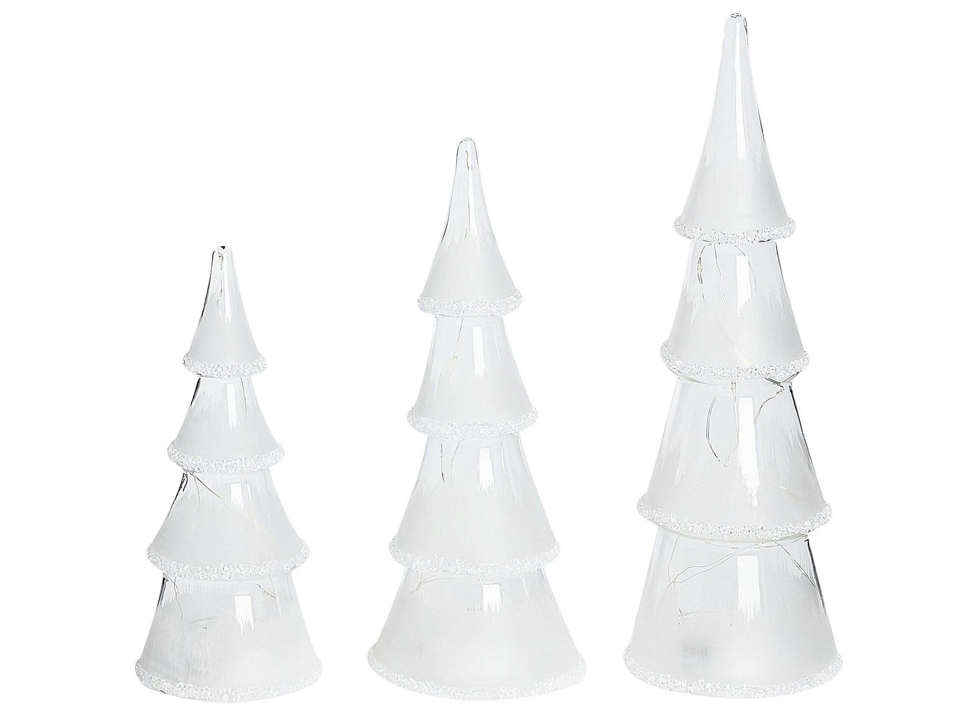 Dekofigur Glas weiss Weihnachtsbaum mit LED-Beleuchtung 3er Set KIERINKI
