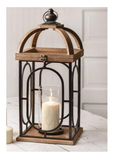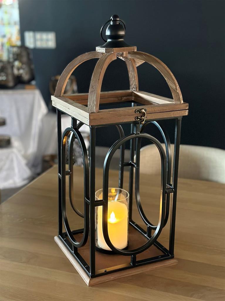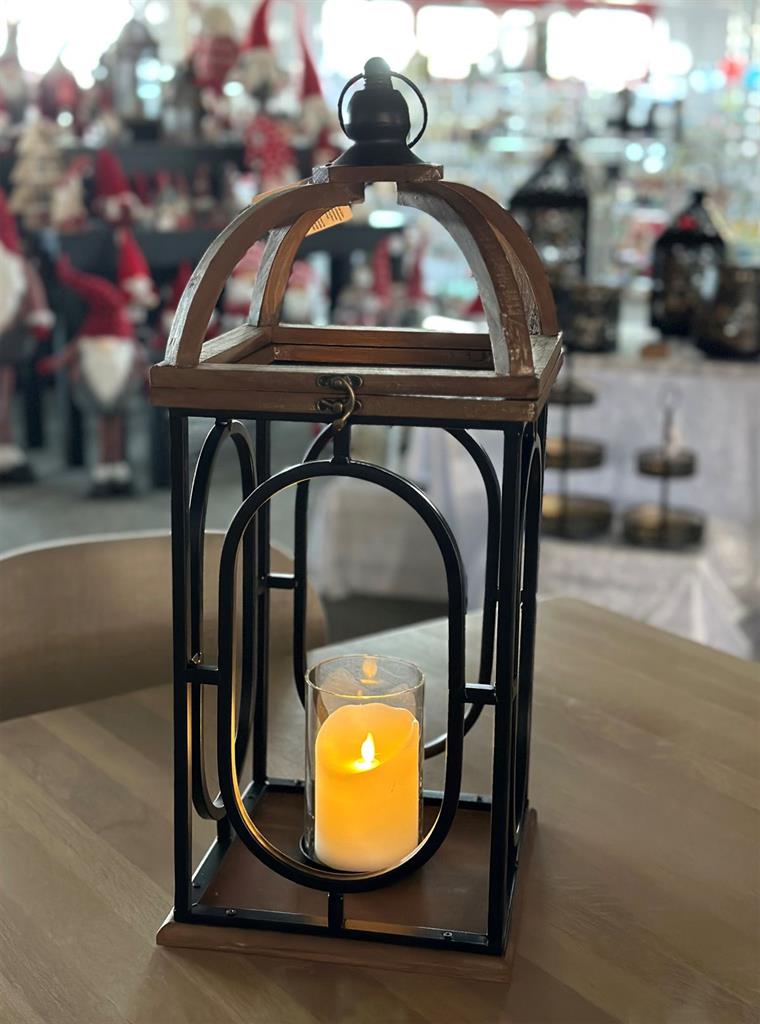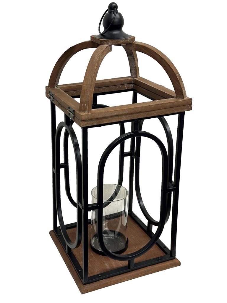 Laterne aus Metall und Holz Dunkelbraun Holz Schwarz Metall mit Hängevorrichtung