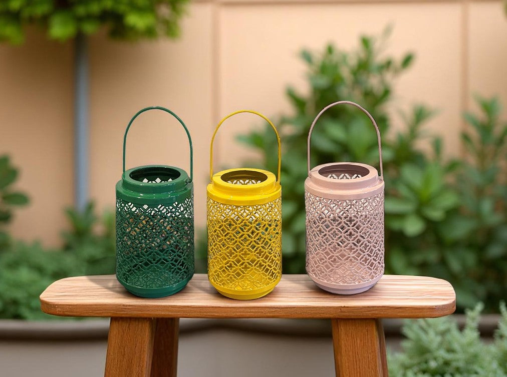 Laterne Kerzenhalter aus Metall H16.5cm mit orientalischem Stanzmuster