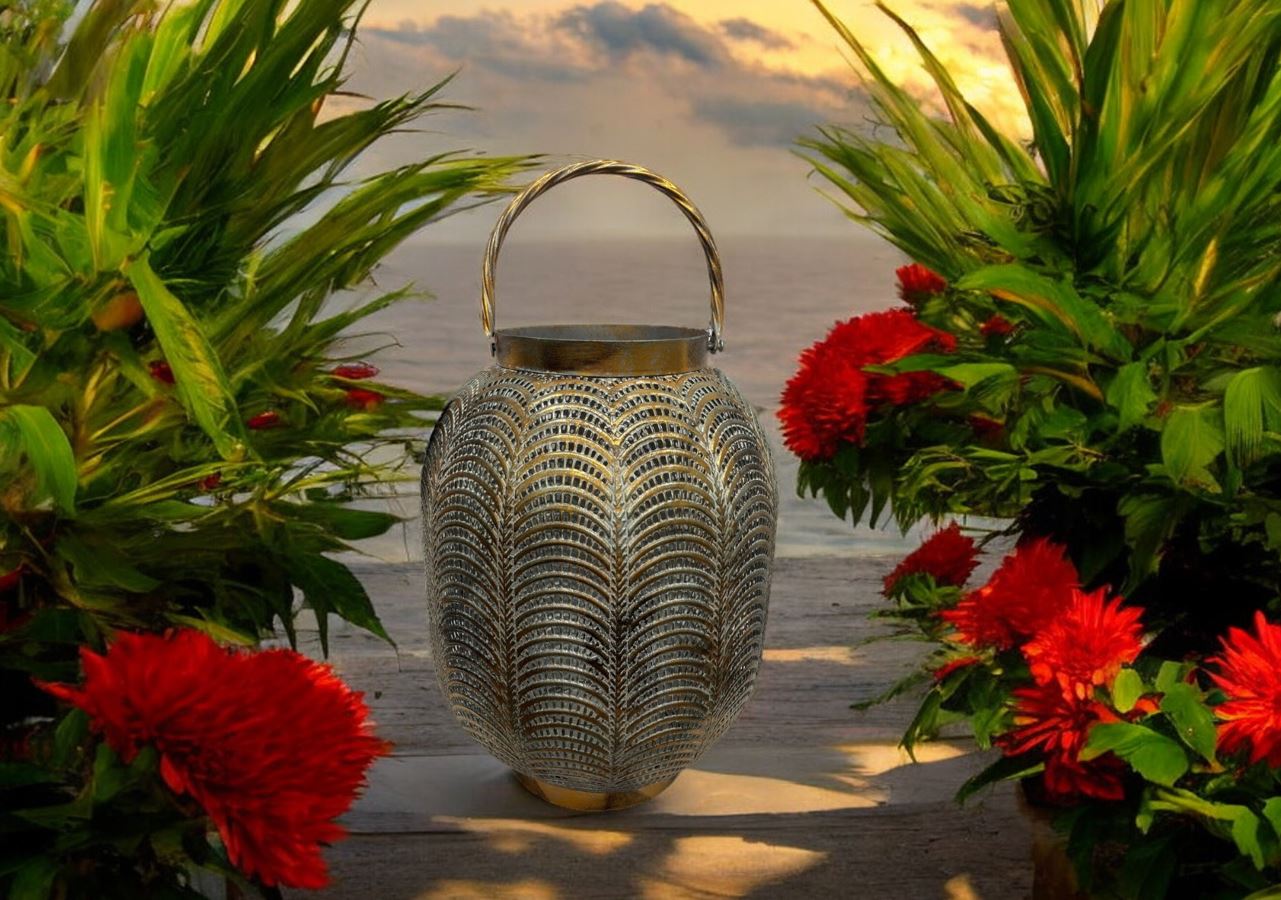 Laterne Metall Antik mit Glaseinsatz Farbe: antik Gold