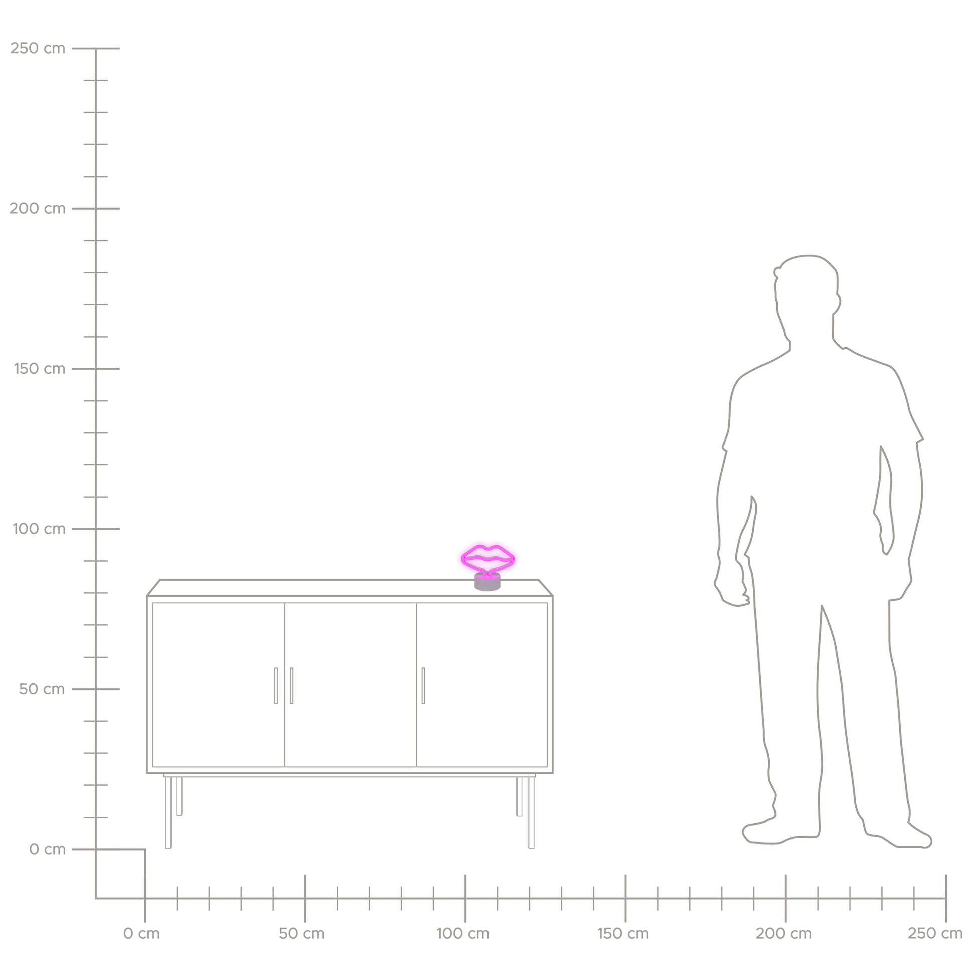 Beschreibung: Auffällig, leuchtend und schön - dieses lippenförmige LED-Neonschild wird Ihr Zuhause aufwerten. Das rosa Licht ist es ein einzigartiger Eyecatcher für das Schlaf- oder Wohnzimmer und schafft ein gemütliches Ambiente. Die Leuchte ist batteriebetrieben und kann somit überall aufgestellt werden. Material: Kunststoff. Zusätzliches Material: PVC. Gewicht: 0.2 Montage: Benötigt keine Montage Das Angebot beinhaltet: 1 x Dekoration, Nicht im Lieferumfang enthalten: Batterien Höhe: 15 Breite: 17 Tiefe: 8 Art: LED Neonlicht Stil: Modern Allgemeine Farbe: Rosa Hauptmaterial: Kunststoff Fassung: 0.99 W LED Type: SMD 2835