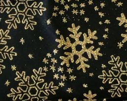 Dekostoff Satin Schwarz +champagner Glitzer Design:Schneeflocken 36cm x 300cm - gerollt