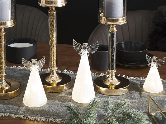 Dekofigur Glas weiss Engelform mit LED-Beleuchtung 3er Set KITTILA
