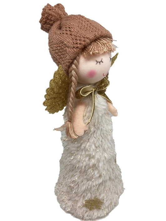 Deko Engel stehend weiss Grösse: 8x7x21cm mit brauner Strickmütze