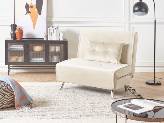 1-Sitzer Schlafsofa Samtstoff creme / silber FARRIS