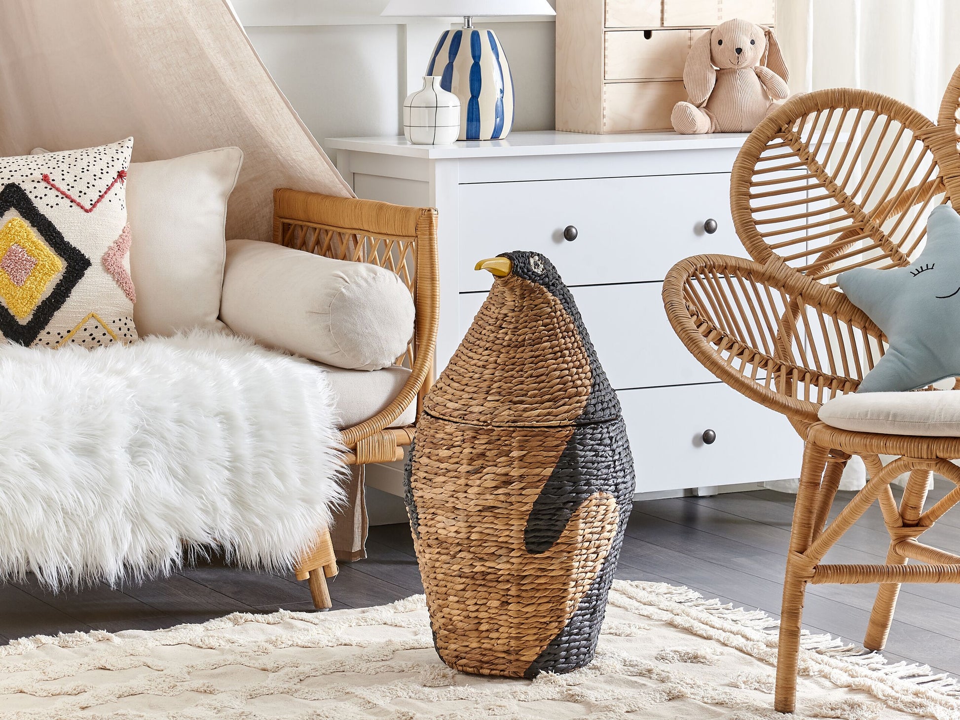 Aufbewahrungskorb mit Deckel Wasserhyazinthe naturfarben Pinguinform 68 cm HADZABE
