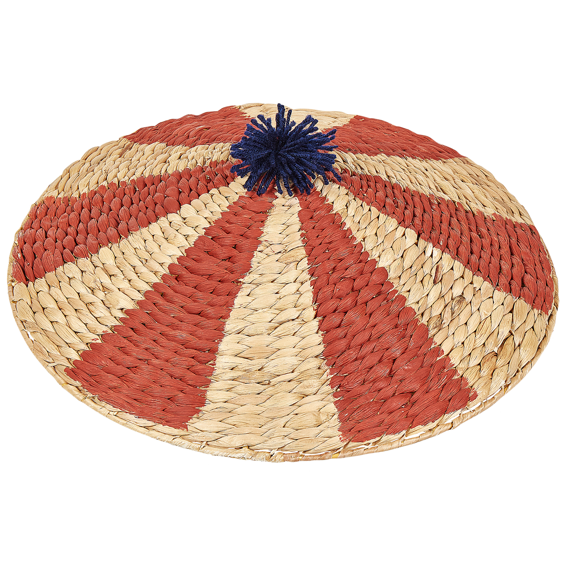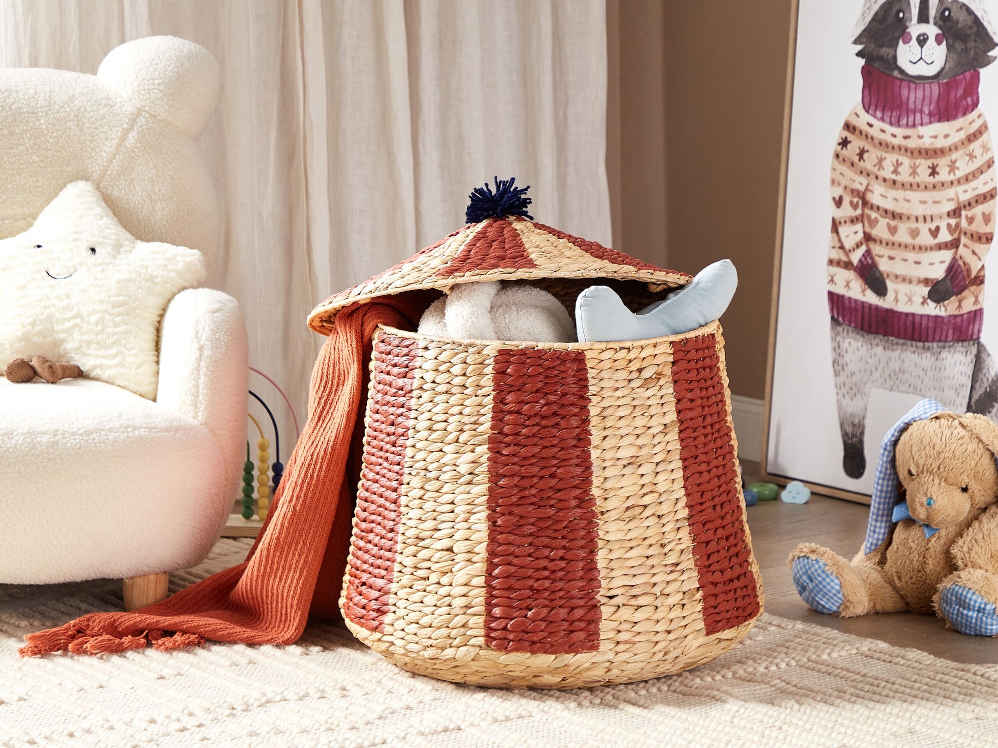 Aufbewahrungskorb mit Deckel Wasserhyazinthe beige / rot Zirkuszeltform 58 cm KIMBERLEY