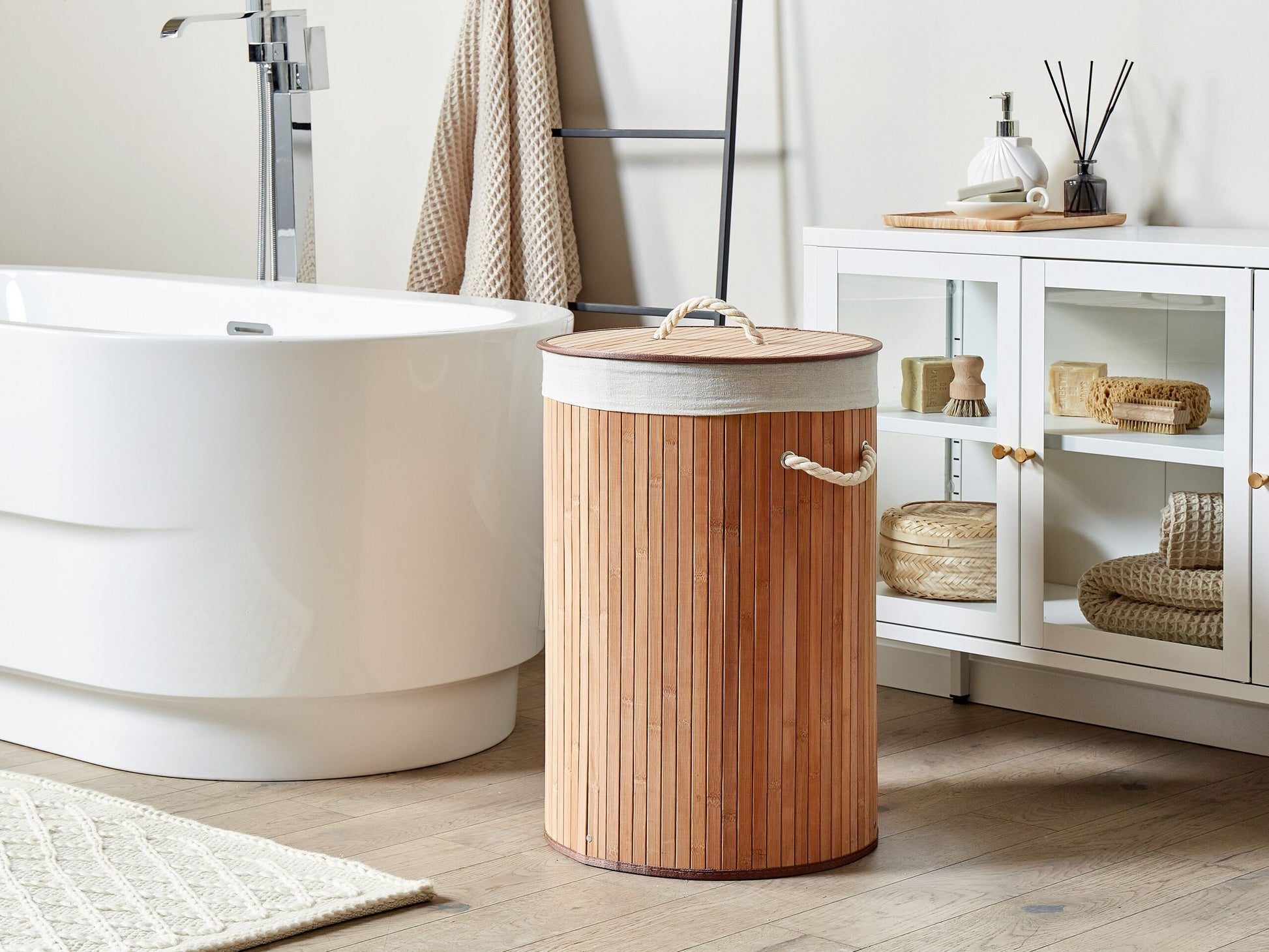 Korb mit Deckel Bambusholz hellbraun rund SANNAR