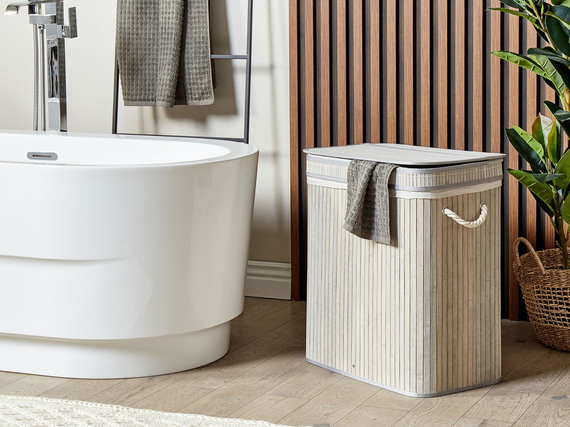 Korb mit Deckel Bambusholz hellgrau rechteckig KALTHOTA