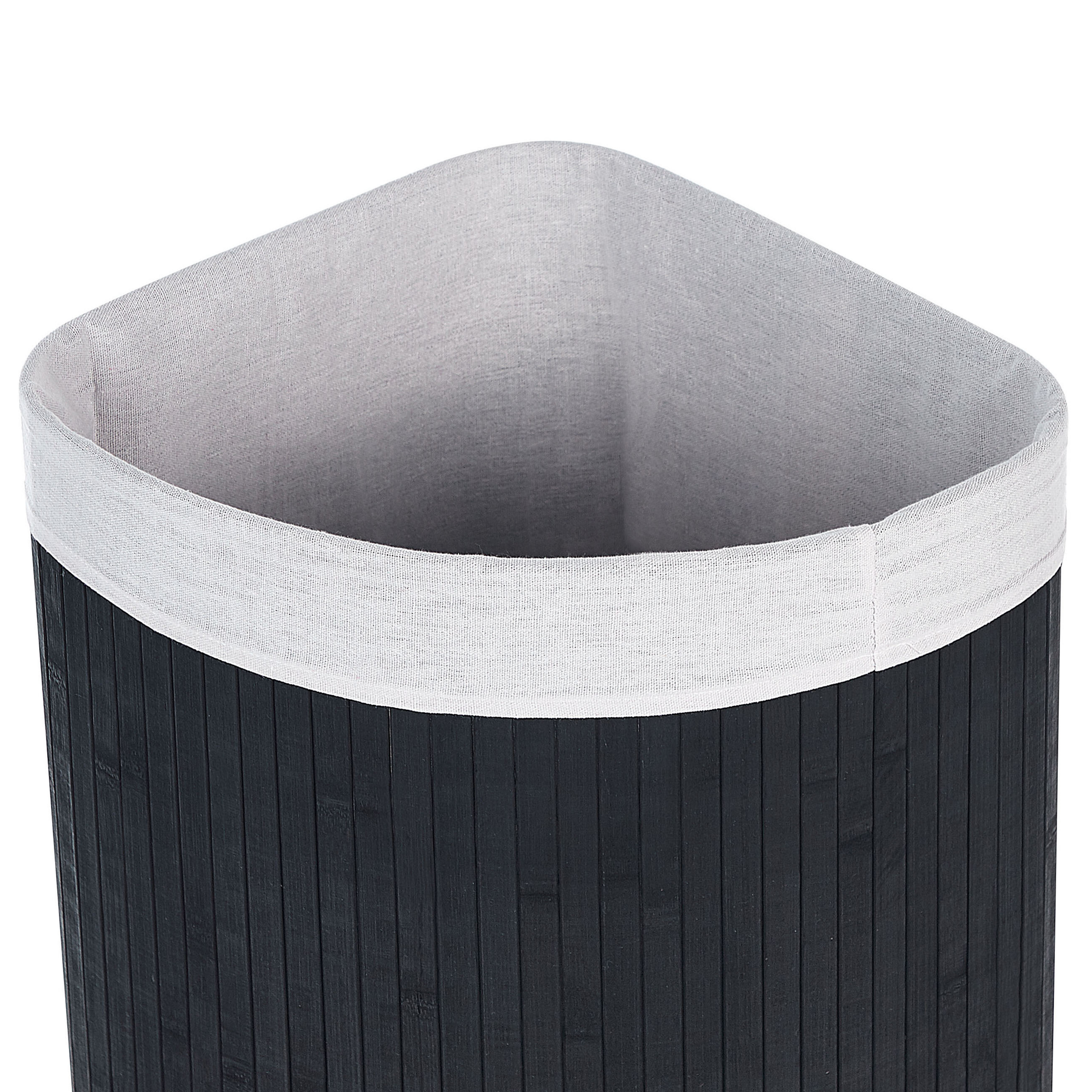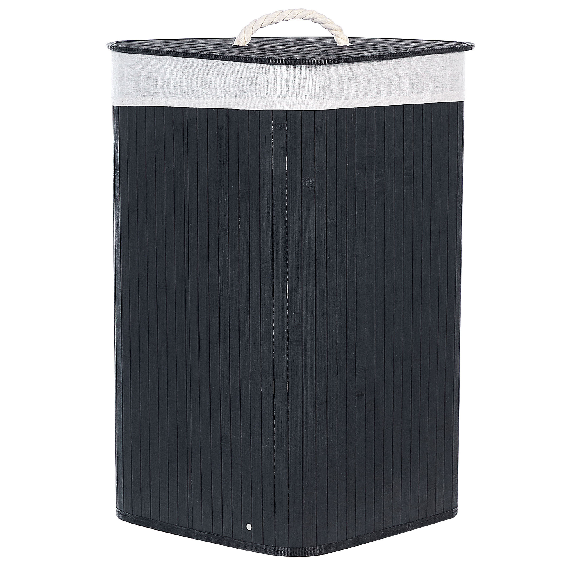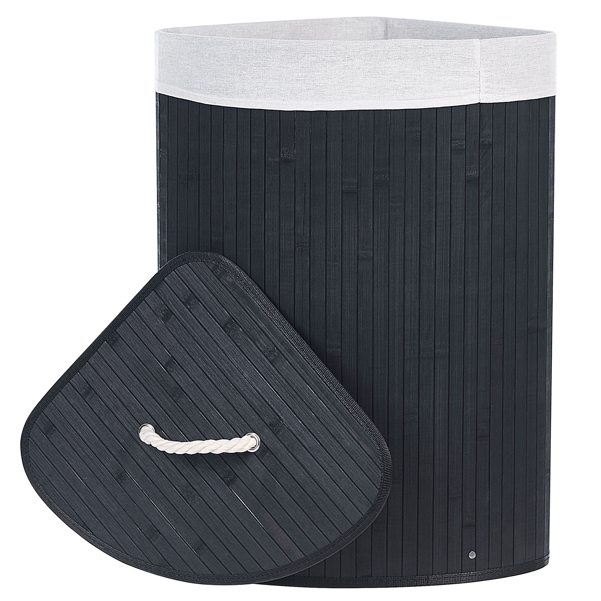Ein absolutes Must-have für Ihr Zuhause. Diese eckige Wäschetonne aus robustem Bambusholz ist eine praktische Ergänzung für jeden Raum des Hauses – sei es ein Bad, Schlafzimmer oder ein anderer Wohnbereich. Der Wäschekorbsammler ist handgefertigt und verfügt über einen herausnehmbaren Stoffeinsatz sowie einen passenden Deckel. Der Korb eignet sich hervorragend zur diskreten und geruchsfreien Aufbewahrung Ihrer Wäsche sowie für viele andere Dinge wie z. B. Kleider, Tagesdecken oder Kinderspielzeug. Der Wäschesack ist herausnehmbar und lässt sich angenehm bis hin zur Waschmaschine transportieren. Material: Bambusholz. Zusätzliches Material: Polyester, Baumwolle, Viskose. Material Zusammensetzung: 60% Polyester, 30% Baumwolle, 10% Viskose Gewicht: 2 Montage: Benötigt keine Montage Holzart: Bambusoideae Holzursprung: China Das Angebot beinhaltet: 1 x Korb Höhe: 60 zusätzliche Information: Holz ist ein Naturprodukt. Farb- und Strukturunterschiede, Narben, Falten und sonstige Naturmerkmale sind Echtheitsbeweise und keine zur Reklamation berechtigende Fehler., Da bei der Herstellung natürliche Materialien verwendet werden, können kleine Farb-, Form-, bzw. Grössendifferenzen auftreten. Diese Unterschiede stellen jedoch keinen Produktfehler dar. Gestalten: Dreieckig Breite: 60 Tiefe: 35 Art: Aufbewahrungskorb Stil: Klassisch Allgemeine Farbe: Schwarz Hauptmaterial: Bambusholz
