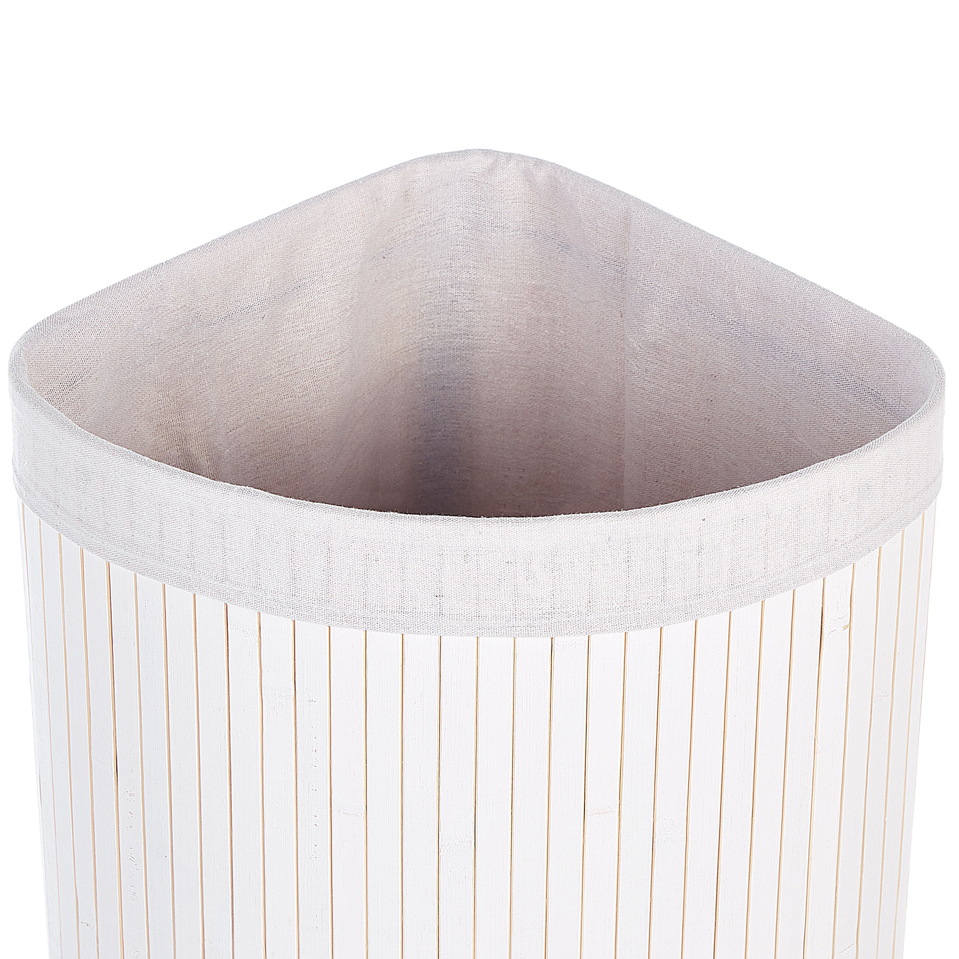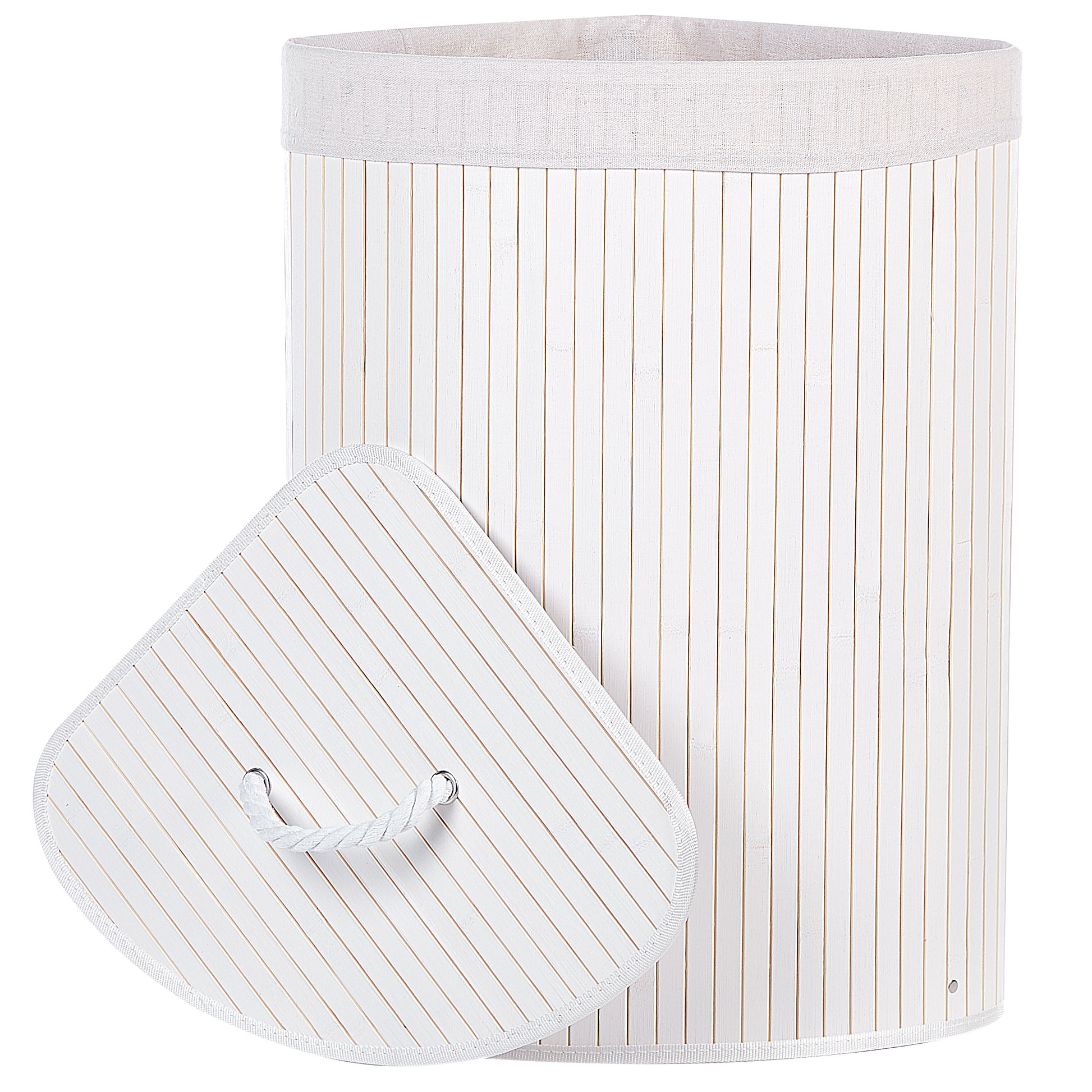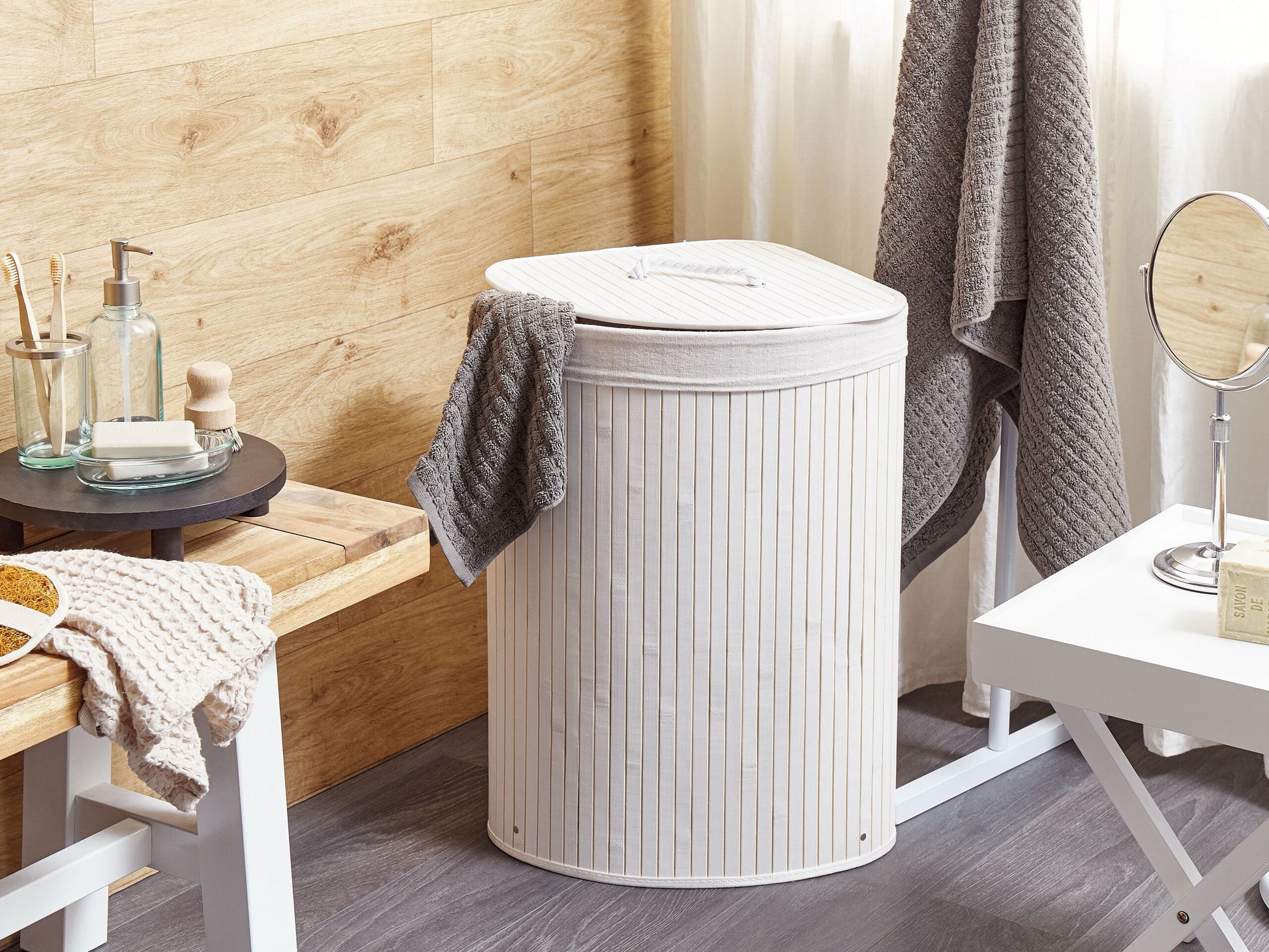 Ein absolutes Must-have für Ihr Zuhause. Diese eckige Wäschetonne aus robustem Bambusholz ist eine praktische Ergänzung für jeden Raum des Hauses – sei es ein Bad, Schlafzimmer oder ein anderer Wohnbereich. Der Wäschekorbsammler ist handgefertigt und verfügt über einen herausnehmbaren Stoffeinsatz sowie einen passenden Deckel. Der Korb eignet sich hervorragend zur diskreten und geruchsfreien Aufbewahrung Ihrer Wäsche sowie für viele andere Dinge wie z. B. Kleider, Tagesdecken oder Kinderspielzeug. Der Wäschesack ist herausnehmbar und lässt sich angenehm bis hin zur Waschmaschine transportieren. Material: Bambusholz. Zusätzliches Material: Polyester, Baumwolle, Viskose. Material Zusammensetzung: 60% Polyester, 30% Baumwolle, 10% Viskose Gewicht: 2 Montage: Benötigt keine Montage Holzart: Bambusoideae Holzursprung: China Das Angebot beinhaltet: 1 x Korb Höhe: 60 zusätzliche Information: Holz ist ein Naturprodukt. Farb- und Strukturunterschiede, Narben, Falten und sonstige Naturmerkmale sind Echtheitsbeweise und keine zur Reklamation berechtigende Fehler., Da bei der Herstellung natürliche Materialien verwendet werden, können kleine Farb-, Form-, bzw. Grössendifferenzen auftreten. Diese Unterschiede stellen jedoch keinen Produktfehler dar. Gestalten: Dreieckig Breite: 60 Tiefe: 35 Art: Aufbewahrungskorb Stil: Klassisch Allgemeine Farbe: Weiss Hauptmaterial: Bambusholz