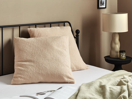 Dekokissen 2er Set LEUZEA Bouclé 60 x 60 cm Sandbeige Ohne Muster