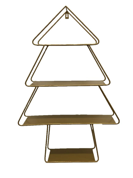 Etagere als Baum mit 4 Ablagen aus Metall in Gold