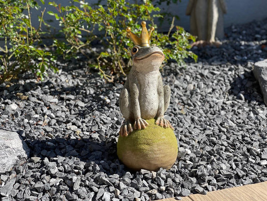 Froschkönig auf Kugel aus Polyresin L:15cm B:15cm H:36cm