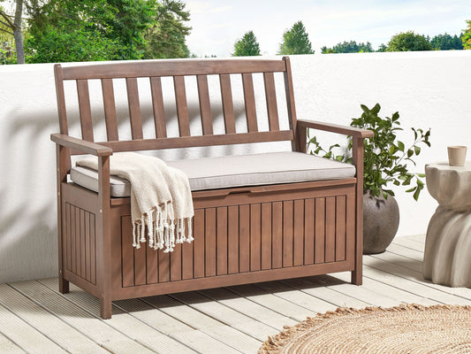 Gartenbank mit Auflage SOVANA 120 cm mit Stauraum Akazienholz Hellgrau