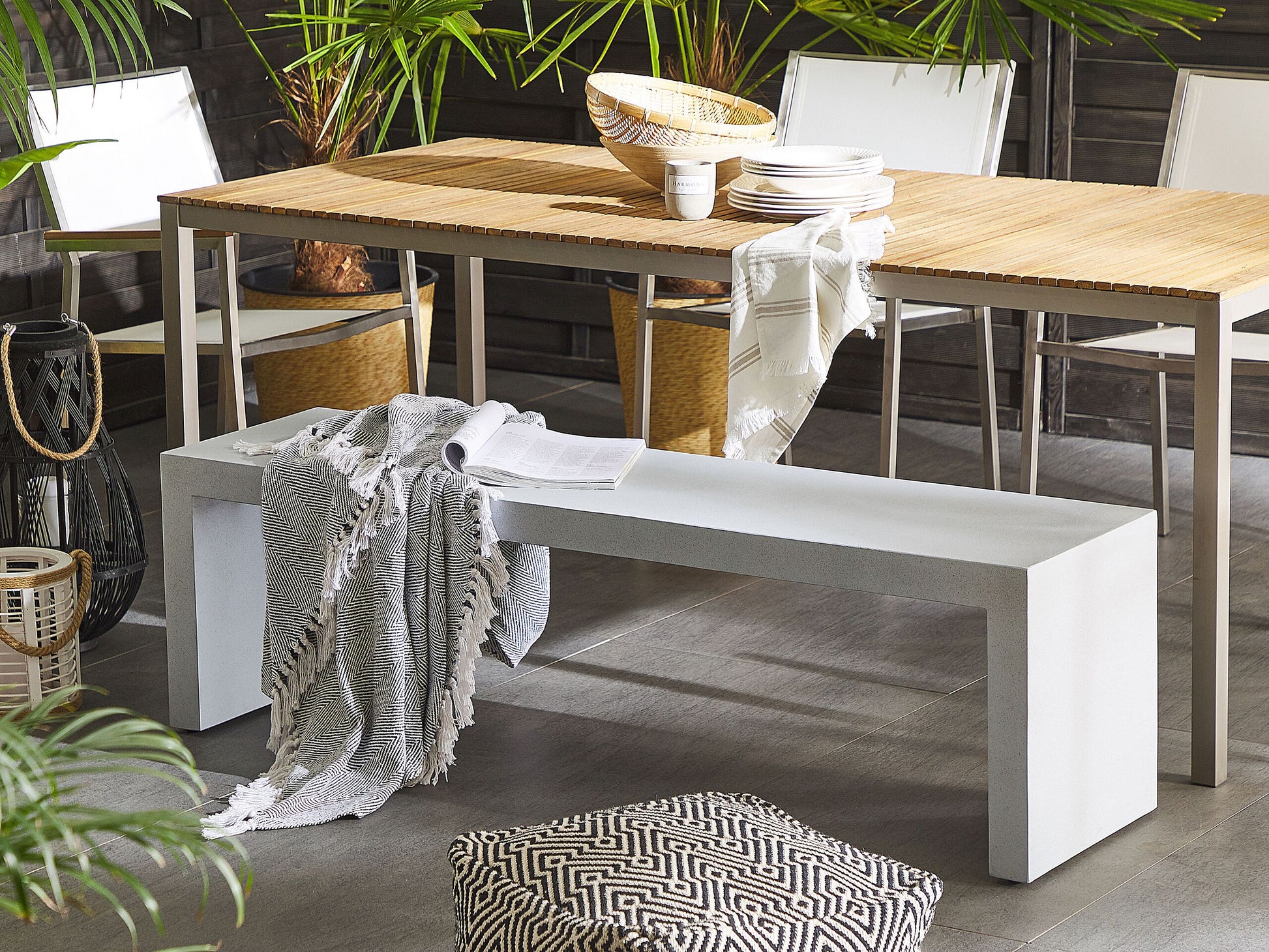 Diese einzigartige und absolut im Trend liegende Bank wird das vielbewunderte Highlight in Ihrem Garten werden. Diese Möbel eignen sich sowohl für den Aussen- wie auch für den Innenbereich. Erleben Sie Zement ganz neu - zeitlos, originell und modern! Die Möbel können abhängig von der Luftfeuchtigkeit mit der Zeit leichte Risse aufweisen, dies liegt in der Natur des Materials und macht den eigentlichen Charme des Möbels aus. Dies hat keinen Einfluss auf die Stabilität, sondern ist einzig optisch eine Veränderung. Material: Faserzement. Gewicht: 35 Kapazität: 2 Personen Montage: Benötigt keine Montage Beine Höhe: 40 Sitzhöhe: 40 Das Angebot beinhaltet: 1 x Bank Sitzfläche: 150x40 Höhe: 40 zusätzliche Information: Bitte beachten Sie, dass jedes Modell leicht von dem im Bild dargestellten abweichen kann. Die Anordnung der Farben und Muster kann unterschiedlich ausfallen und wird nicht als Produktfehler, sondern als Merkmal betrachtet, Die Möbel können abhängig von der Luftfeuchtigkeit mit der Zeit Porenlöcher, feine Risse und Unregelmässigkeiten in der Färbung aufweisen, dies liegt in der Natur des Materials und macht den eigentlichen Charme des Möbels aus. Dies hat keinen Einfluss auf die Stabilität, sondern es ist eine reine optische Veränderung. Breite: 150 Tiefe: 40 Art: Gartenbank Stil: Industriell Allgemeine Farbe: Weiss Hauptmaterial: Faserzement