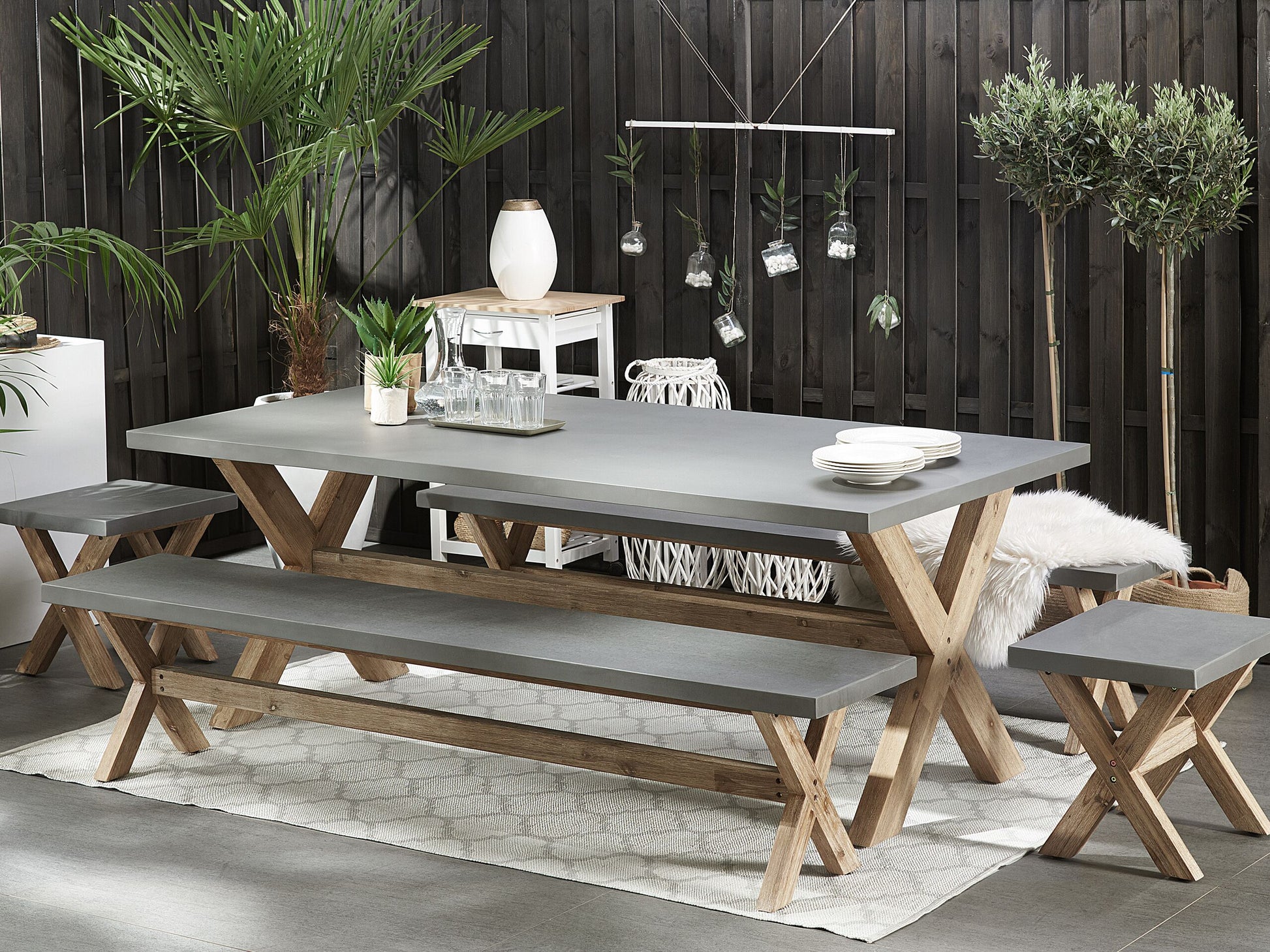 Platz für bis zu 3 Personen bietet Ihnen diese Bank. Geniessen Sie Sommerabende zu Zweit oder Spass an einem Grillabend – diese Bank lässt sich schnell an den gewünschten Ort stellen. Gefertigt aus pflegeleichtem, wetterfestem und witterungsbeständigem Faserzement mit stabilem Untergestell aus nachhaltigem Akazienholz, ist das Sitzmöbel langlebig und wird selbst bei minimalem Pflegeaufwand viele Jahre überdauern. Material: Faserzement. Zusätzliches Material: Akazienholz. Gewicht: 36 Kapazität: 3 Personen Montage: Nicht montiert Holzart: Acacia mangium Holzursprung: Vietnam Beine Höhe: 41 Sitzhöhe: 41 Das Angebot beinhaltet: 1 x Bank Sitzfläche: 200x40 Höhe: 45 zusätzliche Information: Damit das folgende Produkt jahrelang seine Schönheit beibehält, stellen wir Ihnen ein ausführliches Pflegehandbuch zur Verfügung. Die Pflegeanleitung und Tipps zur richtigen Wartung Ihres neuen Produkts finden Sie finden Sie unten im Abschnitt „Verpackung und Montage“., Die Möbel können abhängig von der Luftfeuchtigkeit mit der Zeit Porenlöcher, feine Risse und Unregelmässigkeiten in der Färbung aufweisen, dies liegt in der Natur des Materials und macht den eigentlichen Charme des Möbels aus. Dies hat keinen Einfluss auf die Stabilität, sondern es ist eine reine optische Veränderung. Breite: 200 Tiefe: 40 Art: Gartenbank Stil: Industriell Allgemeine Farbe: Grau Hauptmaterial: Faserzement