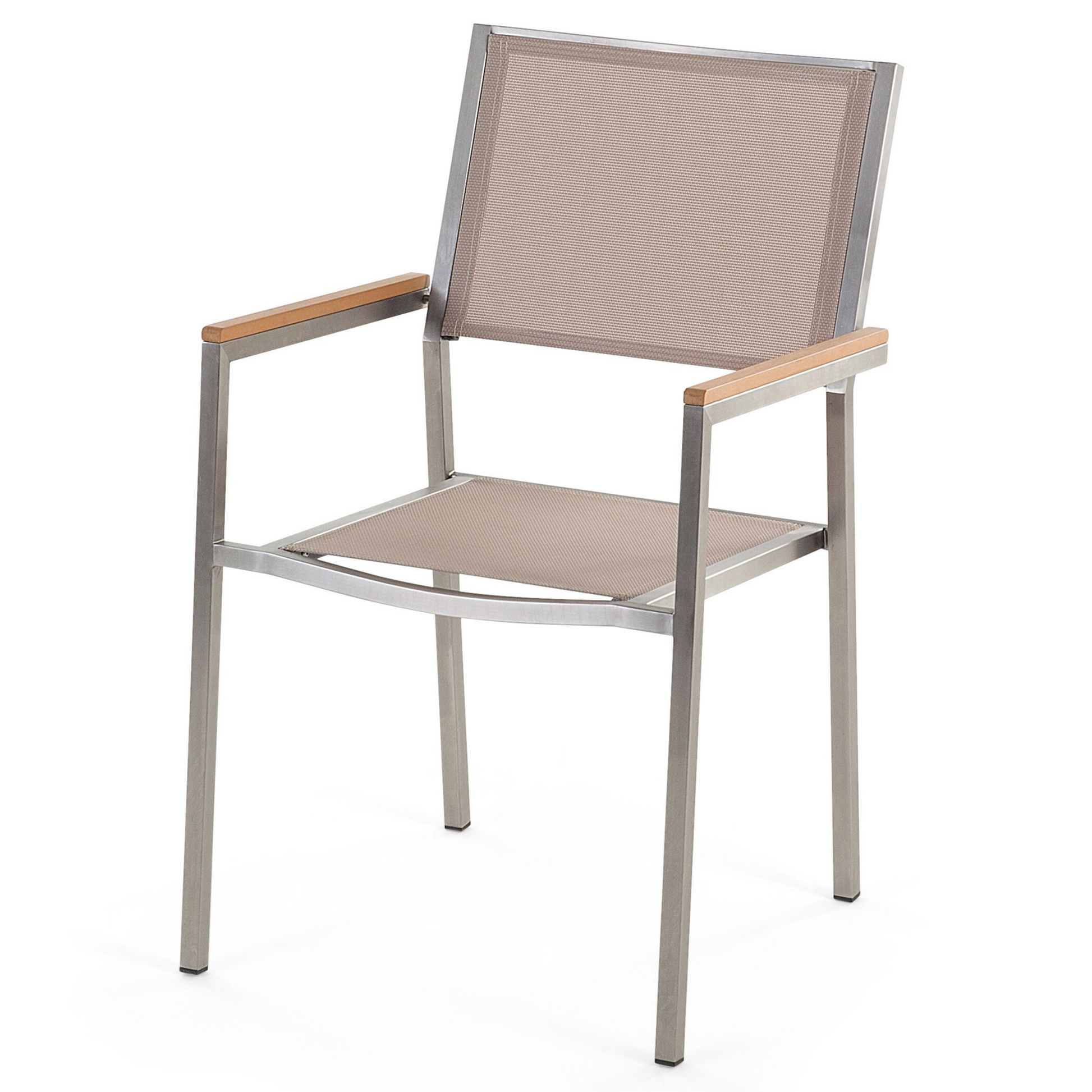 Der moderne Materialmix aus gebürstetem Edelstahl und geöltem Eukalyptusholz ist perfekt auf das gradlinige Design abgestimmt. Der grosse Gartentisch hat eine luxuriöse Ausstrahlung und bietet viel Platz für Gartenpartys und gemütliche Treffen mit Freunden und Familie. Die Tischplatte in Lattenoptik aus Eukalyptus ist äusserst widerstandsfähig und langlebig. Die 8 komfortablen Gartenstühle verfügen über bequeme Armlehnen sowie eine beige, strapazierfähige, beständige Textillbespannung und sorgen für optimalen Sitzkomfort. Material: Edelstahl. Zusätzliches Material: Polyester, Kunstholz. Material Zusammensetzung: 90% PVC, 10% Polyester Gewicht: 98 Kapazität: 8 Personen Montage: Teilweise montiert Holzart: Eucalyptus grandis Holzursprung: Uruguay Gesamtabmessungen: 220x100x74 Tischabmessungen: 220x100x74 Stuhl Abmessungen: 55x58x87 Sitzhöhe: 44 Das Angebot beinhaltet: 1 x Tisch, 8 x Stühle zusätzliche Information: Damit das folgende Produkt jahrelang seine Schönheit beibehält, stellen wir Ihnen ein ausführliches Pflegehandbuch zur Verfügung. Die Pflegeanleitung und Tipps zur richtigen Wartung Ihres neuen Produkts finden Sie finden Sie unten im Abschnitt „Verpackung und Montage“., Holz ist ein Naturprodukt. Farb- und Strukturunterschiede, Narben, Falten und sonstige Naturmerkmale sind Echtheitsbeweise und keine zur Reklamation berechtigende Fehler. Art: Garten-Essgruppe für 8 Personen Stil: Modern Allgemeine Farbe: Heller Holzfarbton Hauptmaterial: Edelstahl
