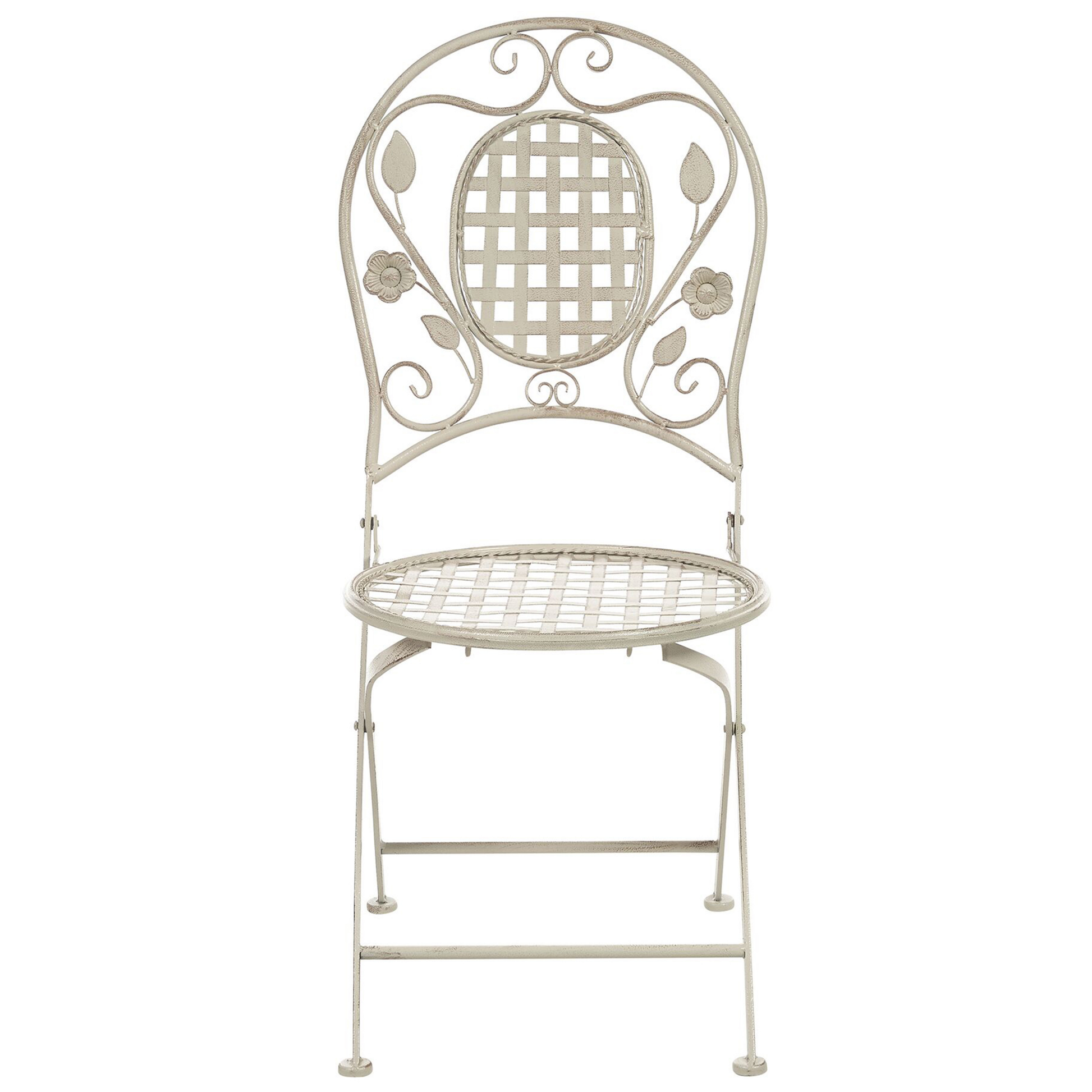 Description: Verleihen Sie Ihrem Balkon oder Garten ein Stück provenzalischen Stil mit diesem eleganten Set aus zwei Stühlen. Die Stühle sind aus pulverbeschichtetem Eisen gefertigt, haben einen leichten Abrieb-Effekt und ein durchbrochenes Design mit floralen Mustern. Mit den passenden Stühlen schaffen Sie den perfekten Platz zum Frühstücken oder Mittagessen in jedem Aussenbereich. Sie können die Stühle zusammenklappen, so dass Sie sie in der Zwischensaison leicht verstauen können. Material: Eisen. Gewicht: 5 Montage: Benötigt keine Montage Gewichtskapazität: 120 Sitzhöhe: 42 Das Angebot beinhaltet: 2 x Stühle Sitzfläche: 40x40 Höhe: 93 zusätzliche Information: Hinweis! Beschädigungsgefahr! Bitte verwenden Sie keine Messer oder andere spitze oder scharfe Gegenstände, um die Verpackung zu öffnen, da das Produkt sonst beschädigt werden könnte., Der sichtbare Alterungseffekt, sowie jede Art von Verfärbung oder Abnutzung sind absichtlich und stellen keinen Qualitätsmangel des Produkts dar. Breite: 43 Tiefe: 52 Art: Gartenstuhl 2er Set Stil: Retro Allgemeine Farbe: Weiss Schatten: Cremeweiss Hauptmaterial: Eisen