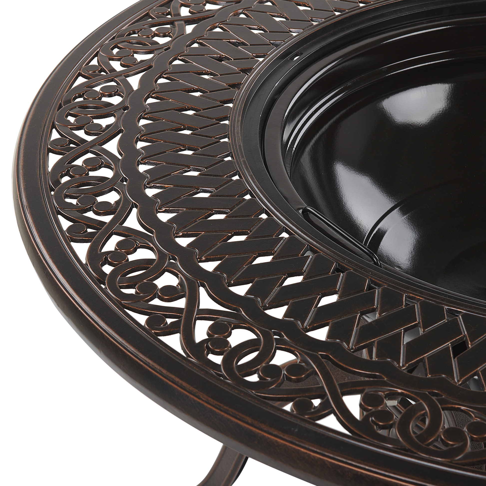 Der wunderschöne und funktionelle Tisch wird jedem Balkon oder Garten einen Hauch von Luxus verleihen. Die Optik dieses Produktes ist dank der Kombination aus eleganter und Retro-Ästhetik einfach bezaubernd. Zudem ist der Balkontisch aus hochwertigen Materialien hergestellt und mit einer abnehmbaren Tischplatte mit Grillfunktion ausgestattet. Material: Aluminium. Gewicht: 34 Kapazität: 4 Personen Montage: Nicht montiert Gewichtskapazität: 150 Beine Höhe: 68 Das Angebot beinhaltet: 1 x Tisch Höhe: 72 Gestalten: Rund Breite: 105 Länge: 105 Art: Gartentisch Stil: Retro Allgemeine Farbe: Braun Schatten: Dunkelbraun Hauptmaterial: Aluminium