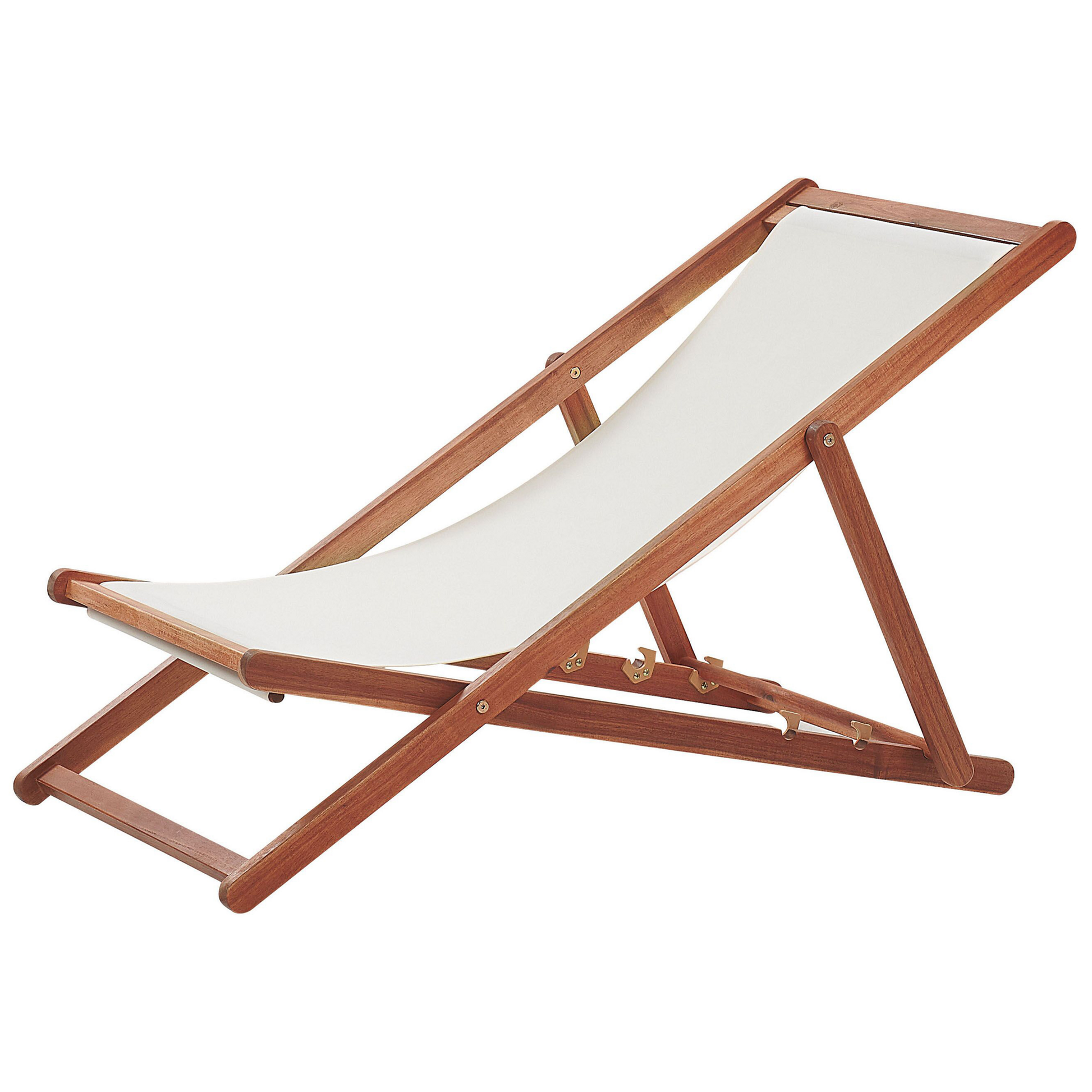 Liegestuhl Akazienholz dunkelbraun Textil cremeweiss ANZIO