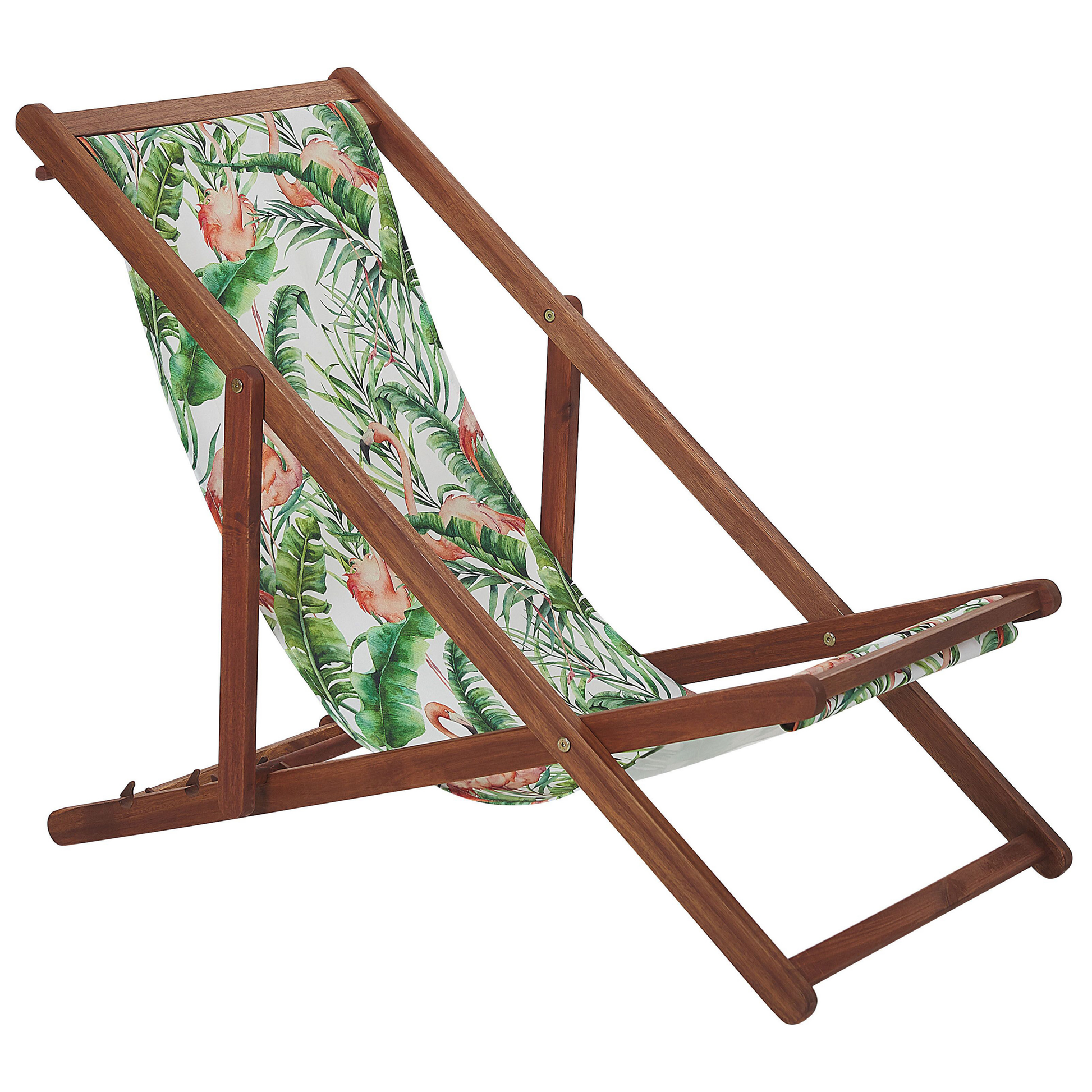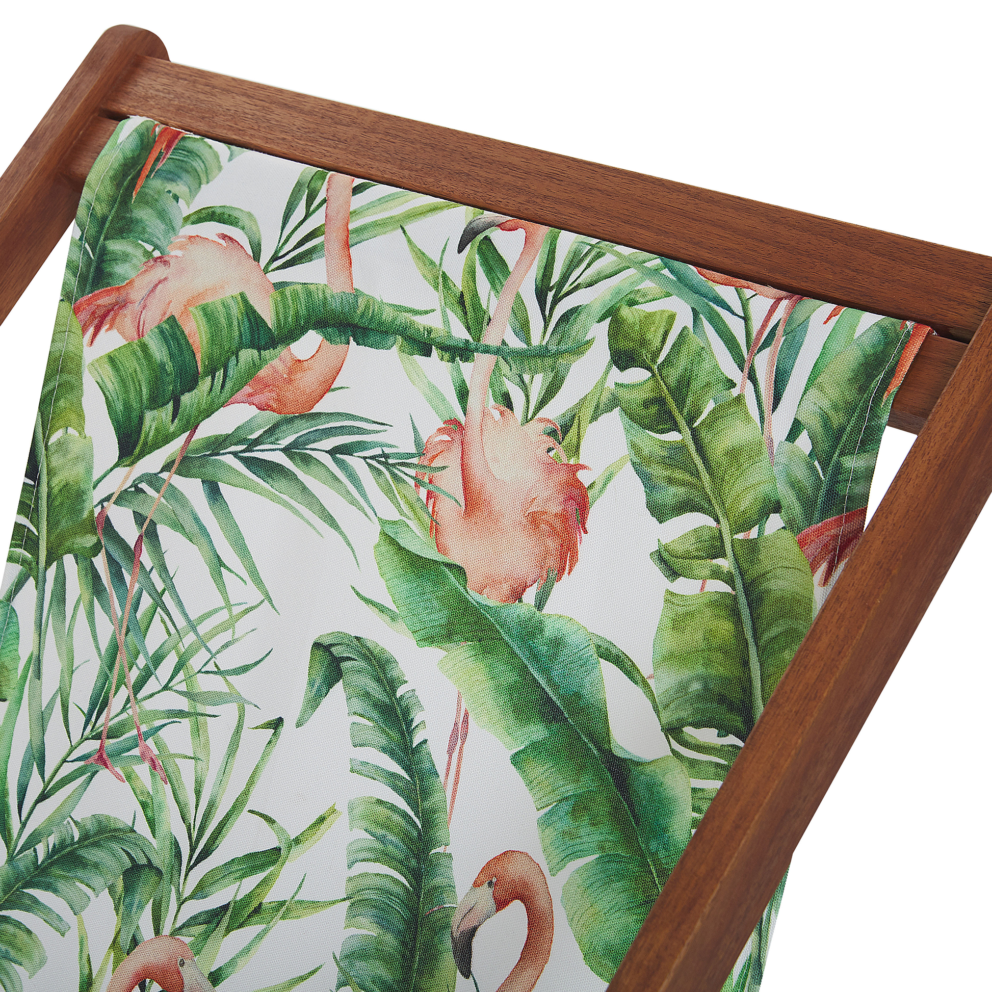 Liegestuhl Akazienholz dunkelbraun Textil weiss / bunt Flamingomuster 2er Set ANZIO