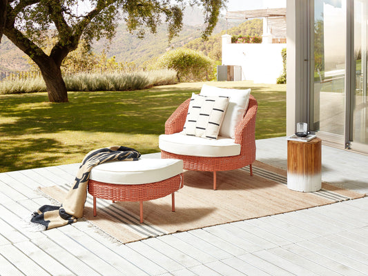 Gartensessel mit Ottomane ARCILLE Polyrattan Pfirsichrosa