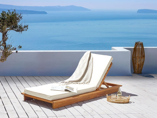 Gartenliege Akazienholz hellbraun Auflage cremeweiss GRANARI