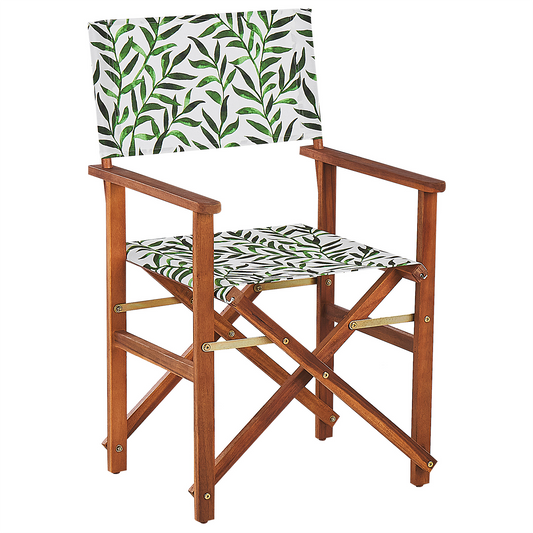 Liegestuhl Akazienholz dunkelbraun Textil grün / weiss Blättermotiv 2er Set ANZIO