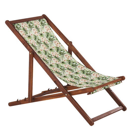 Liegestuhl Akazienholz dunkelbraun Textil weiss / grün Blumenmuster 2er Set ANZIO