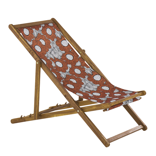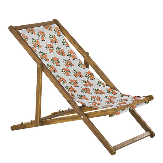 Liegestuhl Akazienholz hellbraun Textil weiss / mehrfarbig Orangenmotiv 2er Set ANZIO