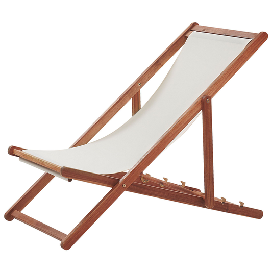 Liegestuhl Akazienholz hellbraun Textil cremeweiss ANZIO