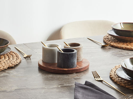 Servierbrett mit Schalen 3er Set PATRAS Stein Marmor Bunt