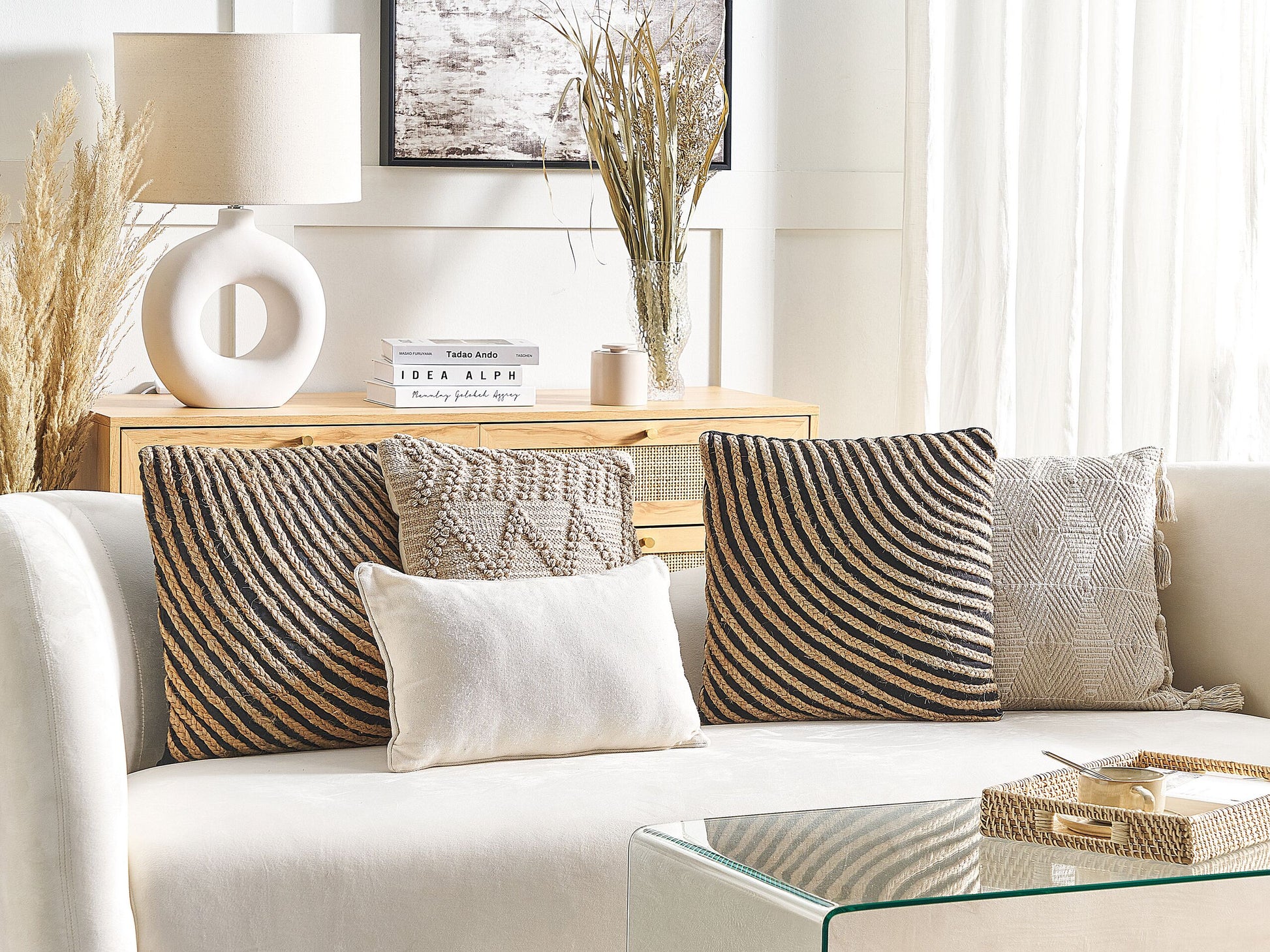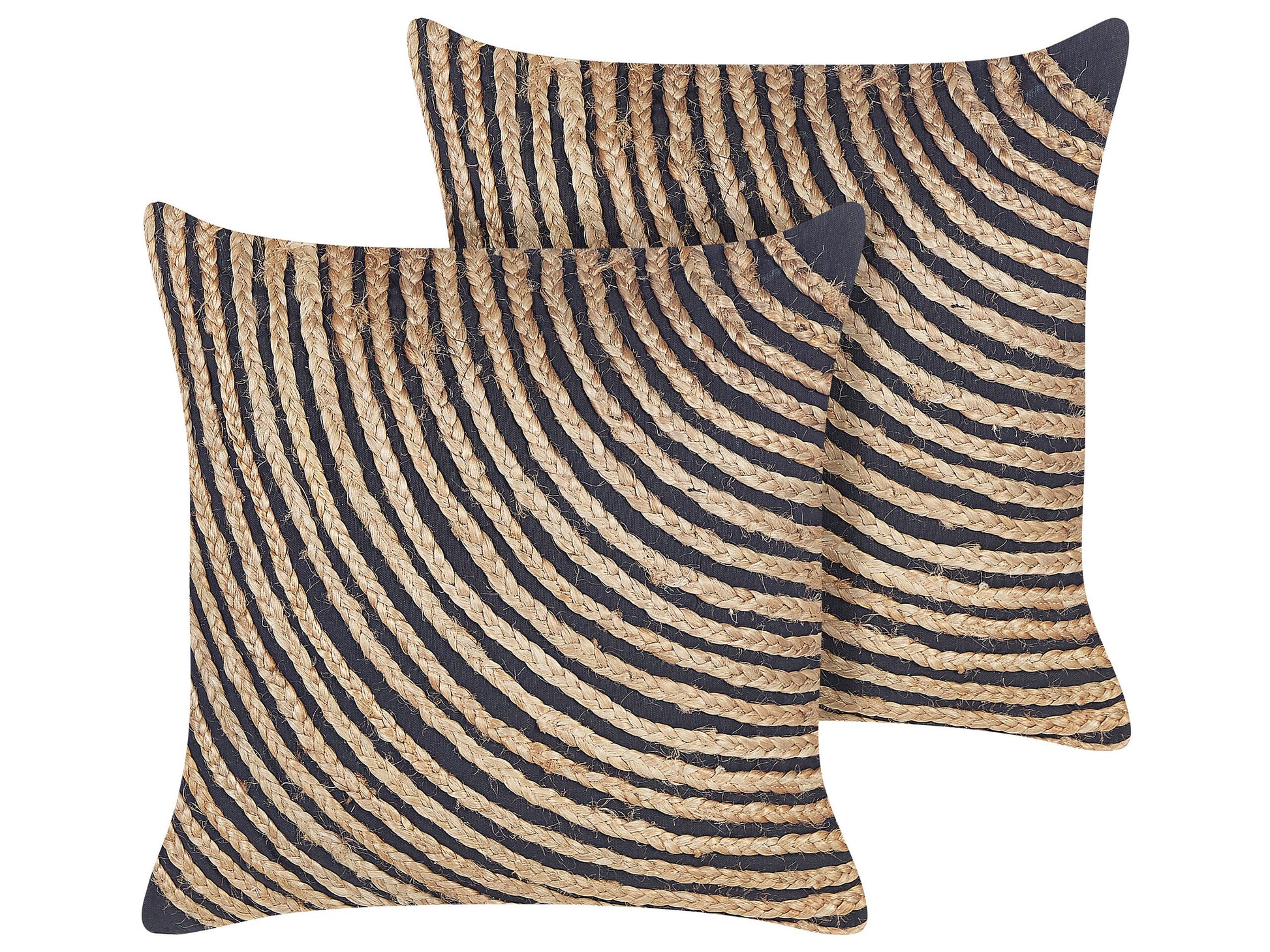 Dekokissen 2er Set BERGENIA Jute 45 x 45 cm Schwarz Streifenmuster