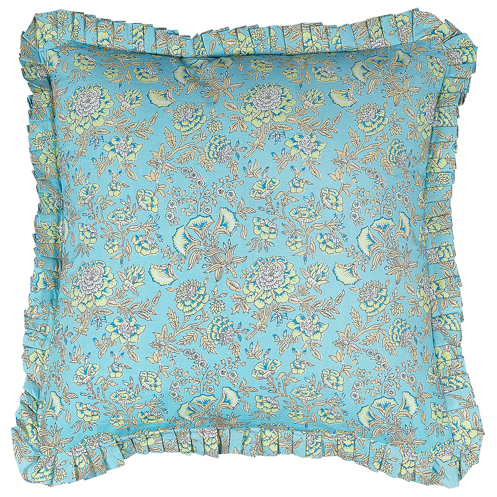 Description: Dieses hochdekorative Sofakissen Set wird mit seinem Retro-Look in jedem Ihrer Wohnräume sofort ins Auge stechen. Das Modell zeichnet sich durch eine dekorative Umrandung sowie ein einzigartiges Blumenmuster aus, das von Hand per Blockdruck hergestellt wurde. Die weichen Kissenbezüge bestehen aus hochwertiger Baumwolle und sind mit einer dicken Füllung versehen, so dass Sie die Kissen nicht nur für dekorative Zwecke, sondern auch zum Entspannen perfekt nutzen können. Die verstecktne Reissverschlüsse erlauben es die Kissenhüllen schnell abzunehmen, auszutauschen und zu waschen. Ausserdem sind die Baumwollbezüge beidseitig und vollflächig bedruckt. Material: Baumwolle. Material Zusammensetzung: 100% Baumwolle Montage: Benötigt keine Montage Das Angebot beinhaltet: 2 x Zierkissen Höhe: 10 zusätzliche Information: Das Kissen ist vakuumverpackt. Nehmen Sie Ihr Kissen aus der Verpackung heraus und lassen Sie es 24 Stunden lang liegen, bis es seine volle Dichte erreicht., Da jedes Produkt handgefertigt wird, kann es zu kleineren Abweichungen in der Farbe und der äusseren Struktur kommen. Diese Abweichungen stellen keinen Qualitätsmangel dar, sondern sind eine warentypische Eigenschaft. Gestalten: Quadratisch Breite: 45 Tiefe: 45 Art: Dekokissen 2er Set Stil: Klassisch Allgemeine Farbe: Blau Schatten: Türkis Muster: Blumenmuster Hauptmaterial: Baumwolle Füllmaterial: Polyester