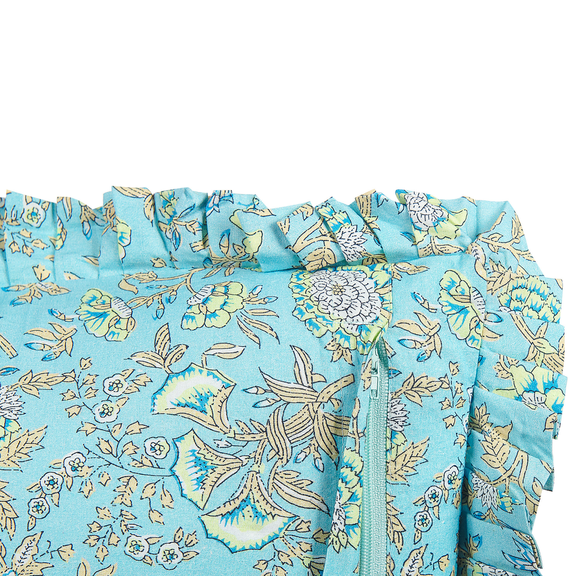 Dieses hochdekorative Sofakissen wird mit seinem Retro-Look in jedem Ihrer Wohnräume sofort ins Auge stechen. Das Modell zeichnet sich durch eine dekorative Umrandung sowie ein einzigartiges Blumenmuster aus, das von Hand per Blockdruck hergestellt wurde. Der weiche Kissenbezug besteht aus hochwertiger Baumwolle und ist mit einer dicken Füllung versehen, so dass Sie das Kissen nicht nur für dekorative Zwecke, sondern auch zum Entspannen perfekt nutzen können. Der versteckte Reissverschluss erlaubt es die Kissenhülle schnell abzunehmen, auszutauschen und zu waschen. Ausserdem ist der Baumwollbezug beidseitig und vollflächig bedruckt. Material: Baumwolle. Material Zusammensetzung: 100% Baumwolle Montage: Benötigt keine Montage Das Angebot beinhaltet: 1 x Zierkissen Höhe: 10 zusätzliche Information: Das Kissen ist vakuumverpackt. Nehmen Sie Ihr Kissen aus der Verpackung heraus und lassen Sie es 24 Stunden lang liegen, bis es seine volle Dichte erreicht., Da jedes Produkt handgefertigt wird, kann es zu kleineren Abweichungen in der Farbe und der äusseren Struktur kommen. Diese Abweichungen stellen keinen Qualitätsmangel dar, sondern sind eine warentypische Eigenschaft. Gestalten: Quadratisch Breite: 45 Tiefe: 45 Art: Dekokissen 2er Set Stil: Klassisch Allgemeine Farbe: Blau Schatten: Türkis Muster: Blumenmuster Hauptmaterial: Baumwolle Füllmaterial: Polyester