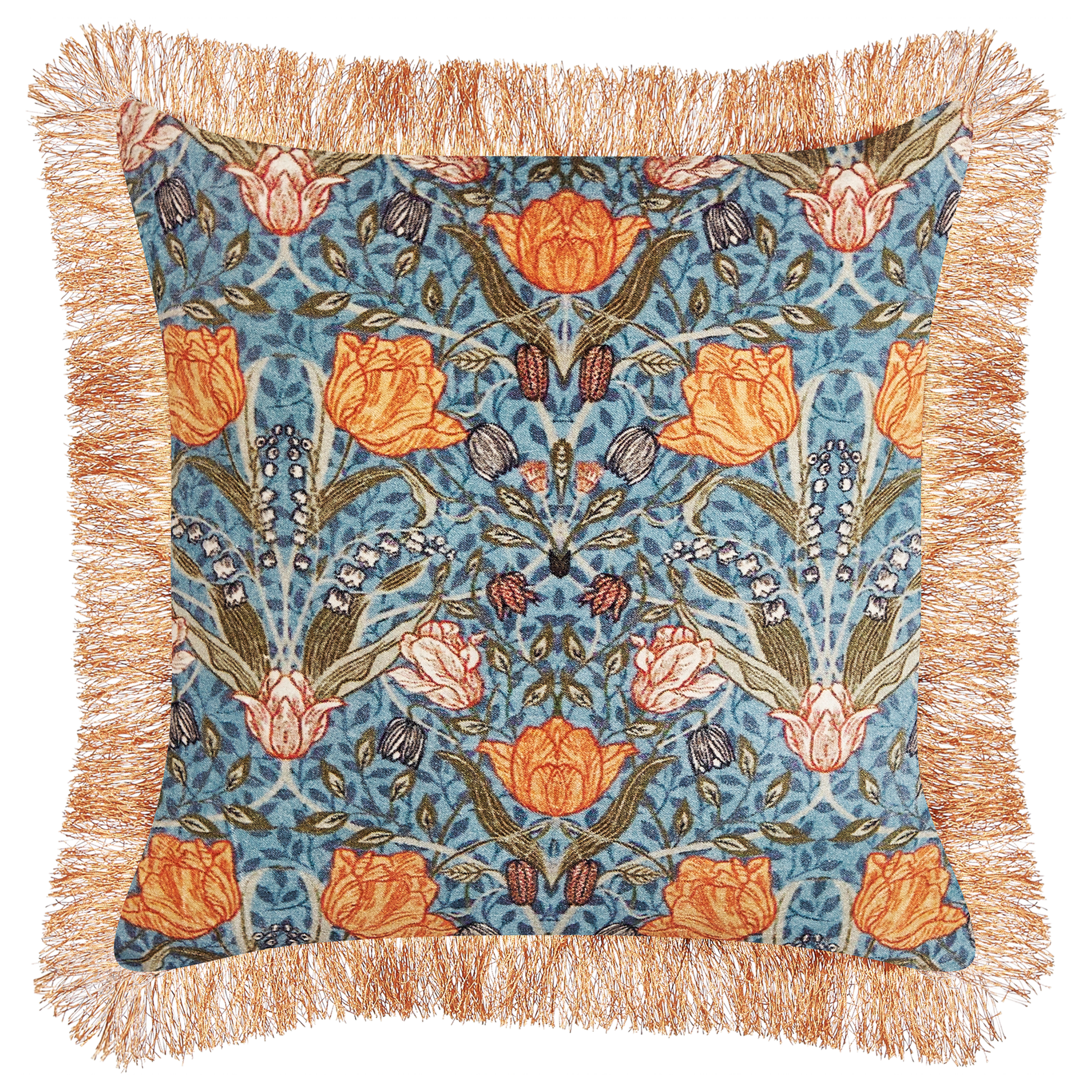 Kein anderes Kissen wird sich so geschmeidig anfühlen wie dieses edle Sofakissen Set. Die Kissenbezüge bestehen aus hochwertiger Baumwolle, wobei die Vorderseite mit einer weichen Samtstruktur veredelt ist. Die Kissen werden mit Sicherheit einen wunderschönen Glanz auf Ihr Sofa, Bett oder Ihren Sessel bringen und das nicht nur wegen dem Trendmaterial, zu dem Baumwollsamt gehört, sondern auch mit ihren farbenfrohen Designs. Die orangen Fransen werden zusammen mit dem farbenreichen Pflanzenmotiven die Baumwollkissen zu Eyecachern auf jedem Sitzmöbel machen. Zudem sind die Kissenhüllen mit praktischen Reissverschlüssen versehen, so gestaltet sich ihre Pflege unfassbar leicht. Material: Samtstoff. Zusätzliches Material: Baumwolle. Material Zusammensetzung: 100% Baumwolle Montage: Benötigt keine Montage Das Angebot beinhaltet: 2 x Zierkissen Höhe: 10 zusätzliche Information: Das Kissen ist vakuumverpackt. Nehmen Sie Ihr Kissen aus der Verpackung heraus und lassen Sie es 24 Stunden lang liegen, bis es seine volle Dichte erreicht., Bitte beachten Sie, dass Samtstoff unter verschiedenen Lichtverhältnissen eine andere Optik haben kann – das Material schimmert bei Tageslicht stärker und wirkt bei künstlicher Beleuchtung in Innenräumen eher gedämpft. Aufgrund der glatten, hochdichten Struktur des Gewebes kann sein Farbton auch variieren, wenn man mit der Hand in verschiedene Richtungen und Winkel über den Stoff fährt. Um den Farbton auszugleichen und Druckstellen zu vermeiden, sollte der Webstoff sanft mit einer offenen Handfläche in eine Richtung gestrichen, mit einem feuchten Tuch abgewischt oder einem Dampfbügeleisen gebügelt werden. Gestalten: Quadratisch Breite: 45 Tiefe: 45 Art: Dekokissen 2er Set Stil: Boho Allgemeine Farbe: Blau Muster: Blumenmuster Hauptmaterial: Samtstoff Füllmaterial: Polyester