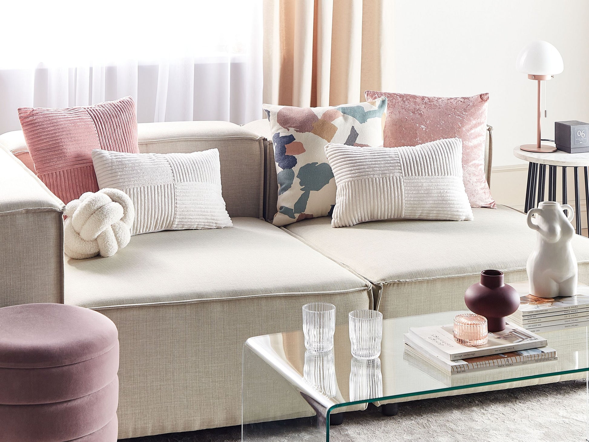 Mit diesem stilvollen, modernen Kissenset werten Sie Ihren Alltag auf. Sie sind aus Cord gefertigt, sehr strapazierfähig und angenehm zu berühren. Sie sind auch sehr pflegeleicht, da sie mit einem Reissverschluss versehen sind, mit dem Sie den Bezug abnehmen und waschen können. Dank ihres Designs können Sie sie mit einer Vielzahl von Einrichtungsstilen kombinieren, von modern bis Retro oder Boho. Material: Cord. Material Zusammensetzung: 100% Polyester Montage: Benötigt keine Montage Das Angebot beinhaltet: 2 x Zierkissen Höhe: 9 zusätzliche Information: Das Kissen ist vakuumverpackt. Nehmen Sie Ihr Kissen aus der Verpackung heraus und lassen Sie es 24 Stunden lang liegen, bis es seine volle Dichte erreicht. Gestalten: Rechteckig Breite: 50 Tiefe: 30 Art: Dekokissen 2er Set Stil: Modern Allgemeine Farbe: Weiss Schatten: Cremeweiss Muster: Geometrisches Muster Hauptmaterial: Cord Füllmaterial: Polyester