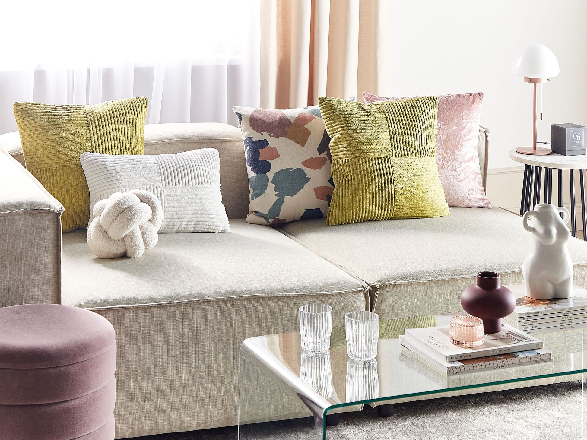 Mit diesem stilvollen, modernen Kissenset werten Sie Ihren Alltag auf. Sie sind aus Cord gefertigt, sehr strapazierfähig und angenehm zu berühren. Sie sind auch sehr pflegeleicht, da sie mit einem Reissverschluss versehen sind, mit dem Sie den Bezug abnehmen und waschen können. Dank ihres Designs können Sie sie mit einer Vielzahl von Einrichtungsstilen kombinieren, von modern bis Retro oder Boho. Material: Cord. Material Zusammensetzung: 100% Polyester Montage: Benötigt keine Montage Das Angebot beinhaltet: 2 x Zierkissen Höhe: 8 zusätzliche Information: Das Kissen ist vakuumverpackt. Nehmen Sie Ihr Kissen aus der Verpackung heraus und lassen Sie es 24 Stunden lang liegen, bis es seine volle Dichte erreicht. Gestalten: Quadratisch Breite: 43 Tiefe: 43 Art: Dekokissen 2er Set Stil: Modern Allgemeine Farbe: Grün Schatten: Olivgrün Muster: Geometrisches Muster Hauptmaterial: Cord Füllmaterial: Polyester