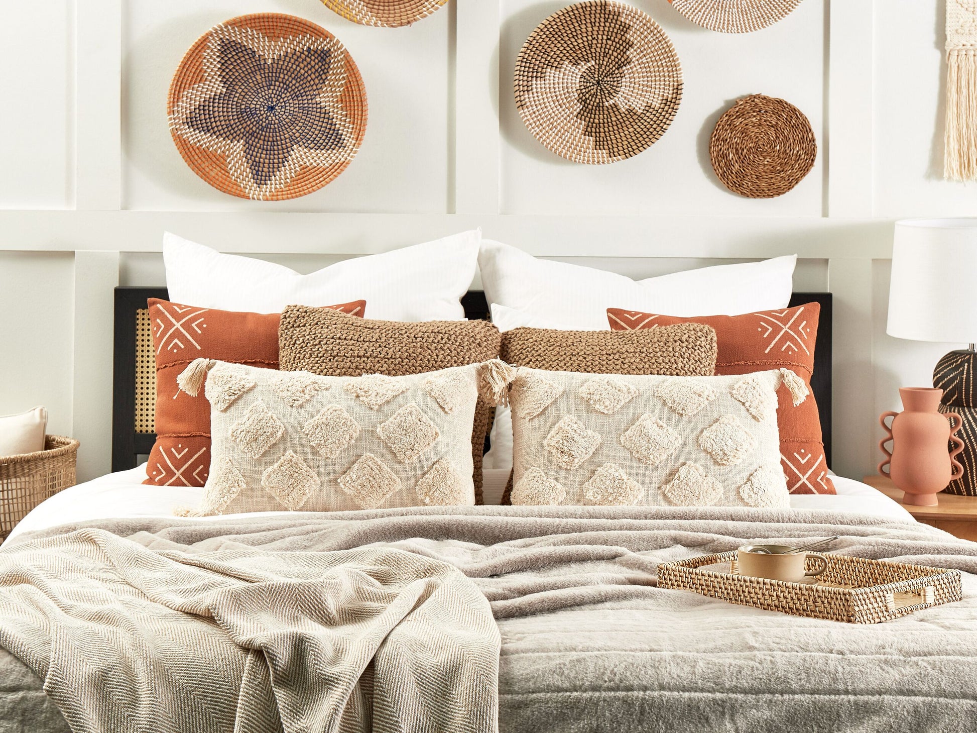 Description: Verleihen Sie Ihrem Sofa oder Bett mit einem schönen Streukissen neuen Glanz. Dieses Modell in einem hellen Beigeton passt gut zu allen modernen, minimalistischen und Boho Einrichtungen. Die Vorderseite ist mit flauschigen geometrischen Details versehen und an allen vier Ecken hängen Fransen. Dank der weichen Füllung fühlt sich das Kissen angenehm an und ist der perfekte Freund für ein Nachmittagsschläfchen. Material: Baumwolle. Material Zusammensetzung: 100% Baumwolle Montage: Benötigt keine Montage Das Angebot beinhaltet: 2 x Zierkissen Höhe: 10 zusätzliche Information: Das Kissen ist vakuumverpackt. Nehmen Sie Ihr Kissen aus der Verpackung heraus und lassen Sie es 24 Stunden lang liegen, bis es seine volle Dichte erreicht., Bitte beachten Sie, dass jedes Modell leicht von dem im Bild dargestellten abweichen kann. Die Anordnung der Farben und Muster kann unterschiedlich ausfallen und wird nicht als Produktfehler, sondern als Merkmal betrachtet Gestalten: Rechteckig Breite: 35 Tiefe: 55 Art: Dekokissen Stil: Boho Allgemeine Farbe: Beige Schatten: Helles Beige Muster: Geometrisches Muster Hauptmaterial: Baumwolle Füllmaterial: Polyester