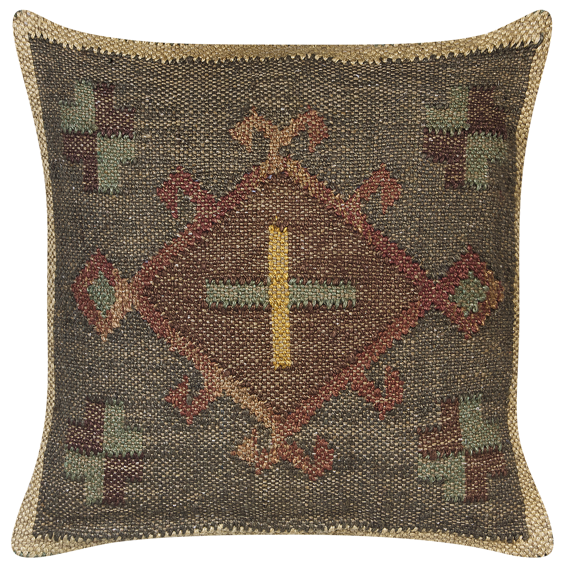 Hergestellt mit der traditionellen indischen Panja-Webtechnik, ist dieses Streukissen ein aussergewöhnliches Kunstwerk, sorgfältig gewebt, um aus jedes Stück ein Unikat zu machen. Die starke Mischung aus Jute und Wolle verleiht dem Bezug und der dicken Polyesterfüllung Form. Das orientalische Muster in einer verwaschenen, mehrfarbigen Palette macht es zu einem passenden Stück für Interieurs im Boho und Vintage-Stil. Perfekt als dekorativer Akzent im natürlichen Stil auf einem Sofa oder Bett. Material: Jute. Zusätzliches Material: Wolle, Baumwolle. Montage: Benötigt keine Montage Das Angebot beinhaltet: 2 x Zierkissen Höhe: 10 zusätzliche Information: Da jedes Produkt handgefertigt wird, kann es zu kleineren Abweichungen in der Farbe und der äusseren Struktur kommen. Diese Abweichungen stellen keinen Qualitätsmangel dar, sondern sind eine warentypische Eigenschaft. Gestalten: Quadratisch Breite: 45 Tiefe: 45 Art: Dekokissen 2er Set Stil: Retro Allgemeine Farbe: Grün Schatten: Dunkelgrün Muster: Orientalisches Muster Hauptmaterial: Jute Füllmaterial: Polyester