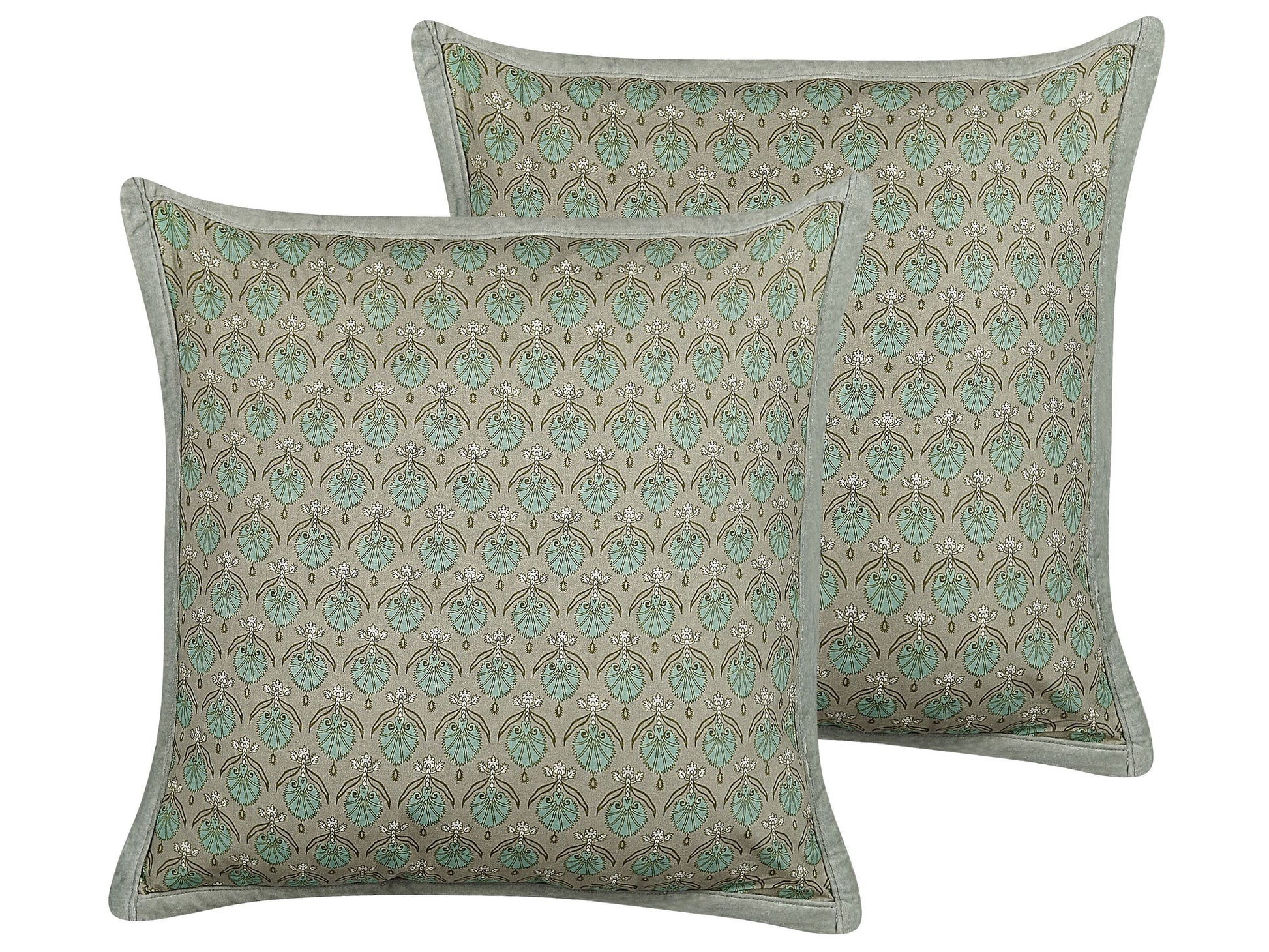 Dekokissen 2er Set PICTUS Samtstoff 45 x 45 cm Grün Pflanzenmuster
