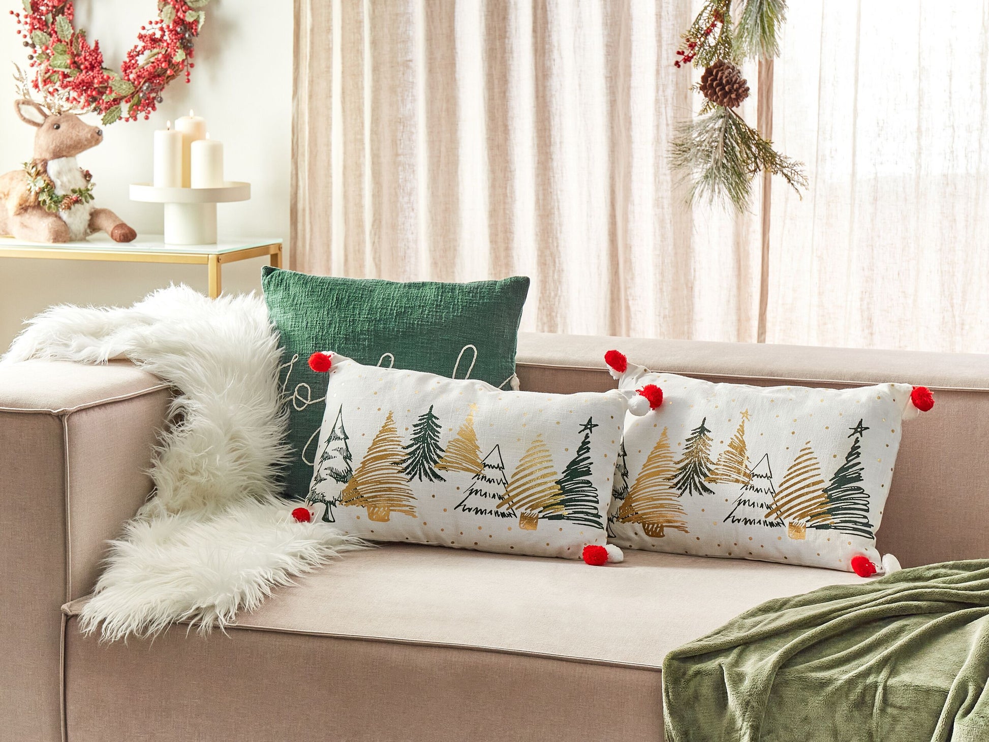 Dekokissen 2er Set ANREDERA Baumwolle 30 x 50 cm Weiss Weihnachtsmotiv