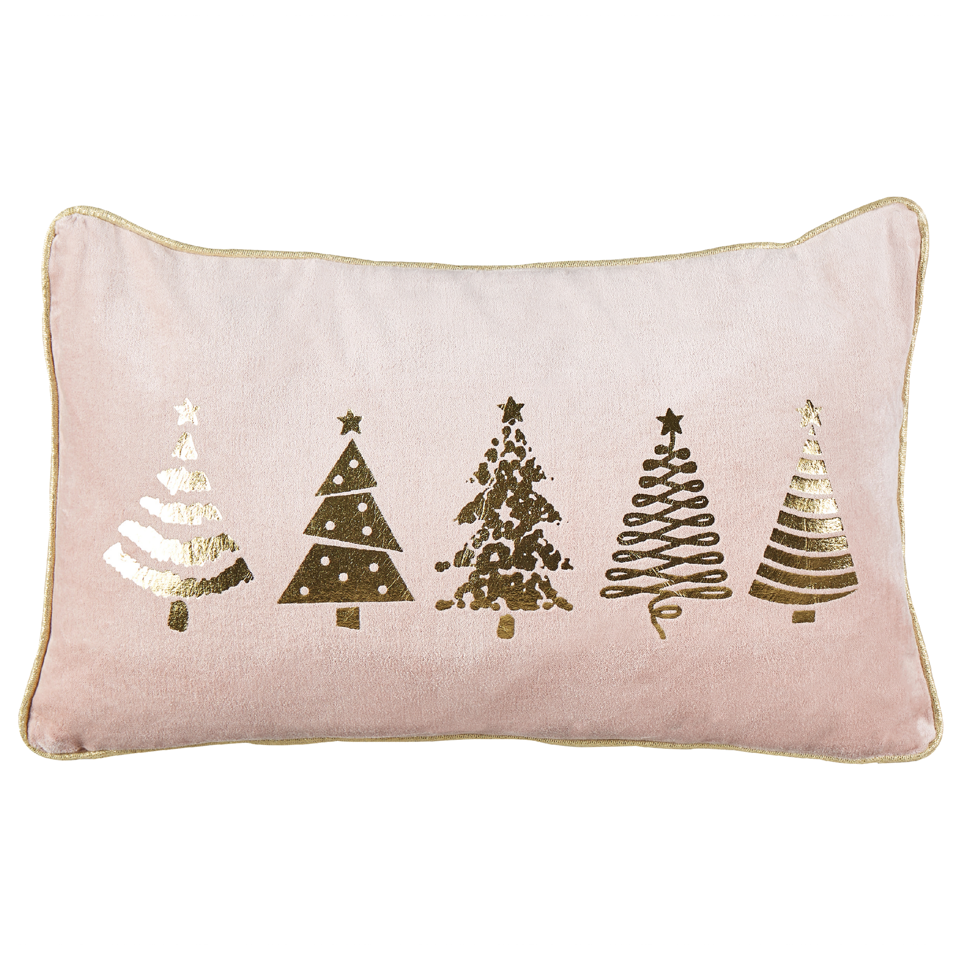 Dekokissen 2er Set ALSOBIA Samtstoff 30 x 50 cm Rosa Weihnachtsmotiv
