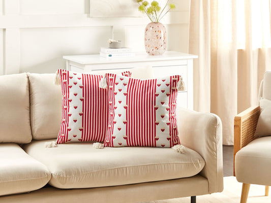 Dekokissen 2er Set BANKSIA Baumwolle 45 x 45 cm Rot Streifenmuster