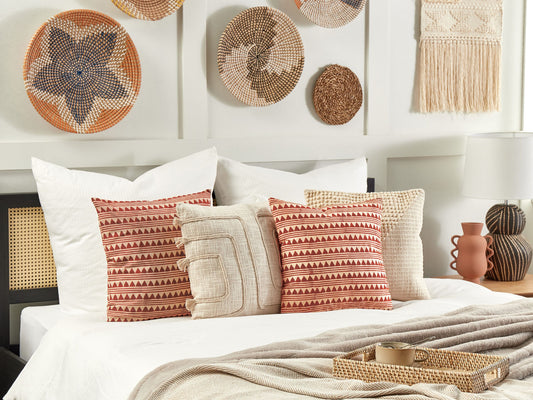 Dekokissen 2er Set LUPINUS Baumwolle 55 x 35 cm Hellbeige Geometrisches Muster