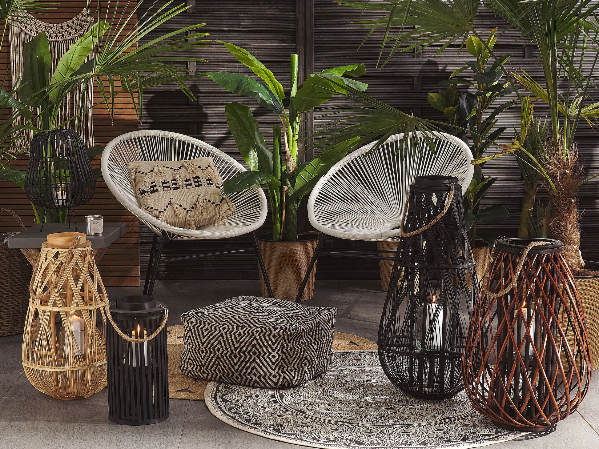 Immer griffbereit, ob Wohnzimmer, Schlafzimmer, Terrasse oder Balkon, mit dem integriertem Henkel lässt sich diesen Kerzenständer aus natürlicher Weide schnell an den gewünschten Ort platzieren und strahlt eine gemütliche und fast geheimnisvolle Atmosphäre aus. Der enthaltenem Glaseinsatz bietet genug Platz für Stumpenkerzen und sorgt für tolle Lichteffekte. Schaffen Sie sich eine ganz besondere Atmosphäre in warmen Sommernächten oder an gemütlichen Winterabenden. Material: Weidenholz. Zusätzliches Material: Glas. Gewicht: 1 Montage: Benötigt keine Montage Holzart: Salix Holzursprung: China Das Angebot beinhaltet: 1 x Laterne Höhe: 40 zusätzliche Information: Laternen aus Holz sollten nicht für längere Zeit im Freien aufbewahrt werden, da extreme Witterungsbedingungen zum Verbiegen der Holzelemente führen können Gestalten: Oval Breite: 21 Tiefe: 21 Art: Laterne Stil: Boho Allgemeine Farbe: Schwarz Hauptmaterial: Weidenholz